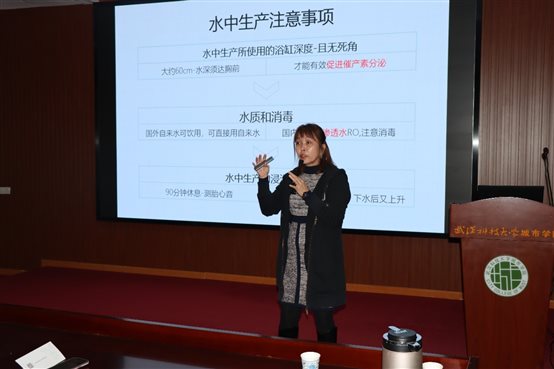 下午两点,刘美芳以“温柔生产和邓斯坦婴语”为医学部学生进行专业宣讲,向学生介绍催眠分娩、水中分娩、居家生产、自由体位生产等多种生产方式。讲座现场气氛热烈,学生们积极与刘美芳互动交流。