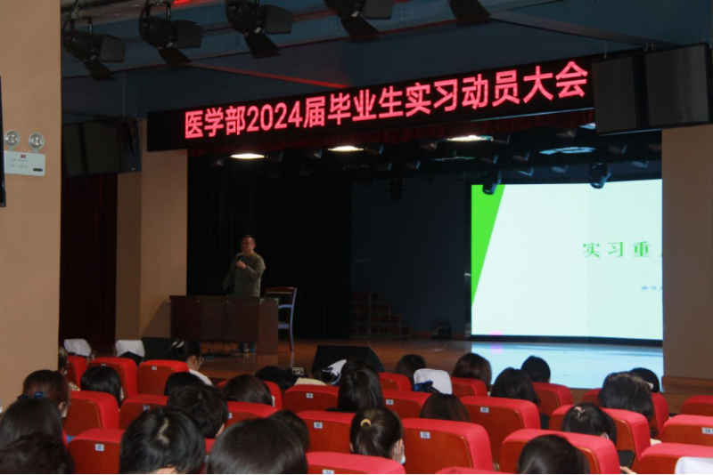 (通讯员:王如斯)为促进大三年级学生对未来实习与就业的规划,为就业打好基础。我校医学部于2023年4月24日在大学生活动中心组织全体2024届毕业生参加了实习动员大会。本次动员大会由医学部综合科科长程苏安老师主持并讲话,2024届全体毕业生参加。