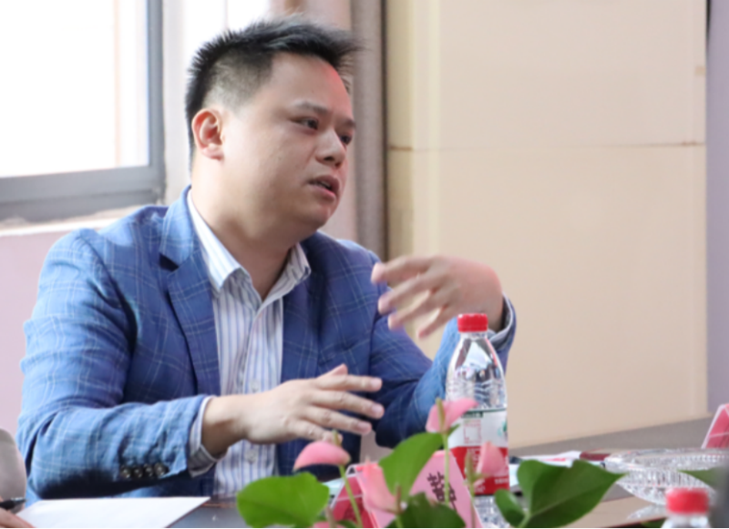 罗健向青山化工园介绍了医学部的基本情况,并表示在我校医学部药学系学生皆为普通高考的全日制本科生后,得到了青山化工园许琼的高度赞扬。