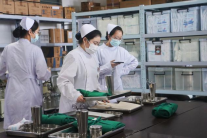 本次比赛复赛技能测试项目为一手一钳铺无菌盘,操作限时间5分钟,主要考核选手们的无菌观念以及对无菌原则、技术的掌握情况。参赛选手胆大心细,评委老师明察秋毫。在用物准备间、候场区、考场外处处都能看到选手既认真又紧张备赛的样子。