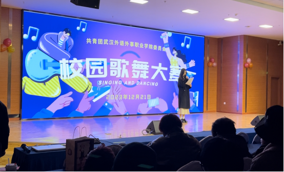 为加强大学生艺术素质教育,展现大学生青春活力与艺术风采,营造健康、高雅、活泼的校园文化氛围,武汉外语外事职业学院校园歌舞大赛于12月21日在藏龙岛校区如期举行。
