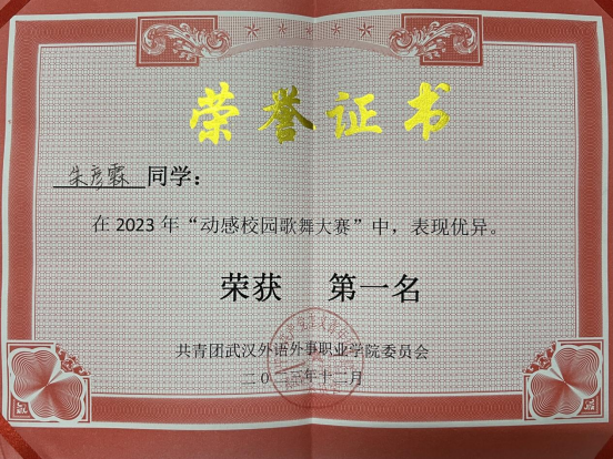 朱彦霖同学展示了她的作品《忆梦阑珊》,一颦一笑一回眸,舞姿宛若飞燕游龙,尽显中国古典艺术之美。最终,经过评委们的现场打分,我部的朱彦霖同学获得了本次校园歌舞大赛舞蹈赛道的第一名。每一段起舞的日子都不负韶华,努力终有收获!