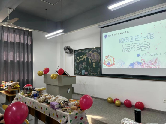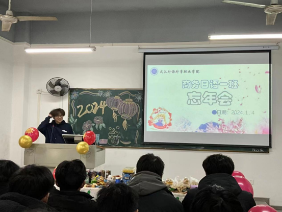 2024年1月4日,新年已到,故年已去。在综合楼教室内,商务日语一班的同学们在老师的带领下,举行了一场热闹的忘年会。