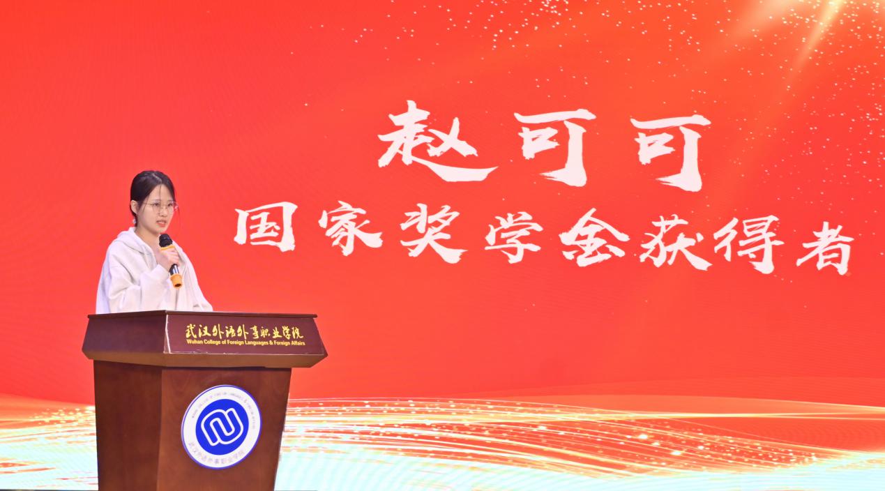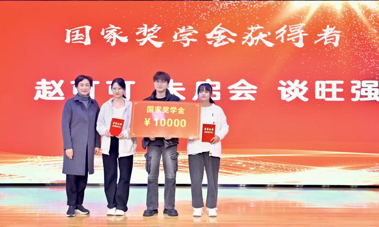 国家奖学金获得者代表赵可可同学回顾自身成长经历,从目标规划、时间管理、挫折应对等方面分享学习心得。她表示:“每一次挑战都是成长的契机,唯有坚持与突破方能抵达远方。”