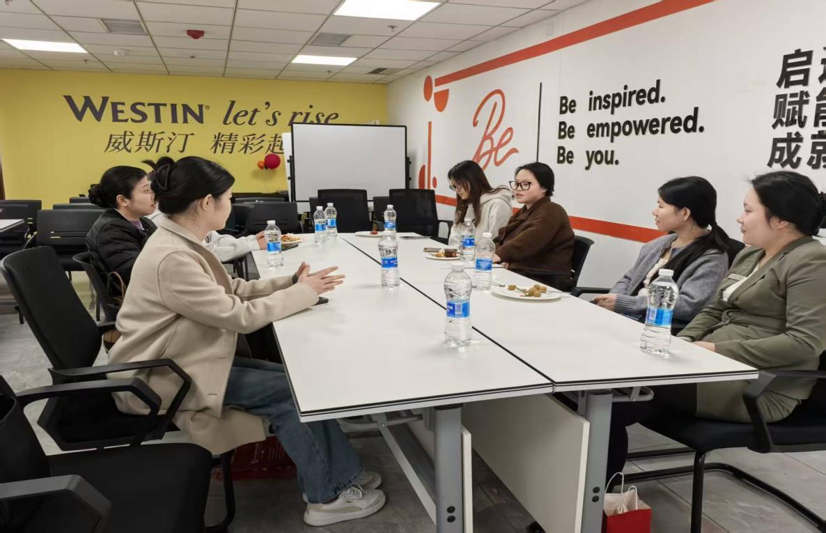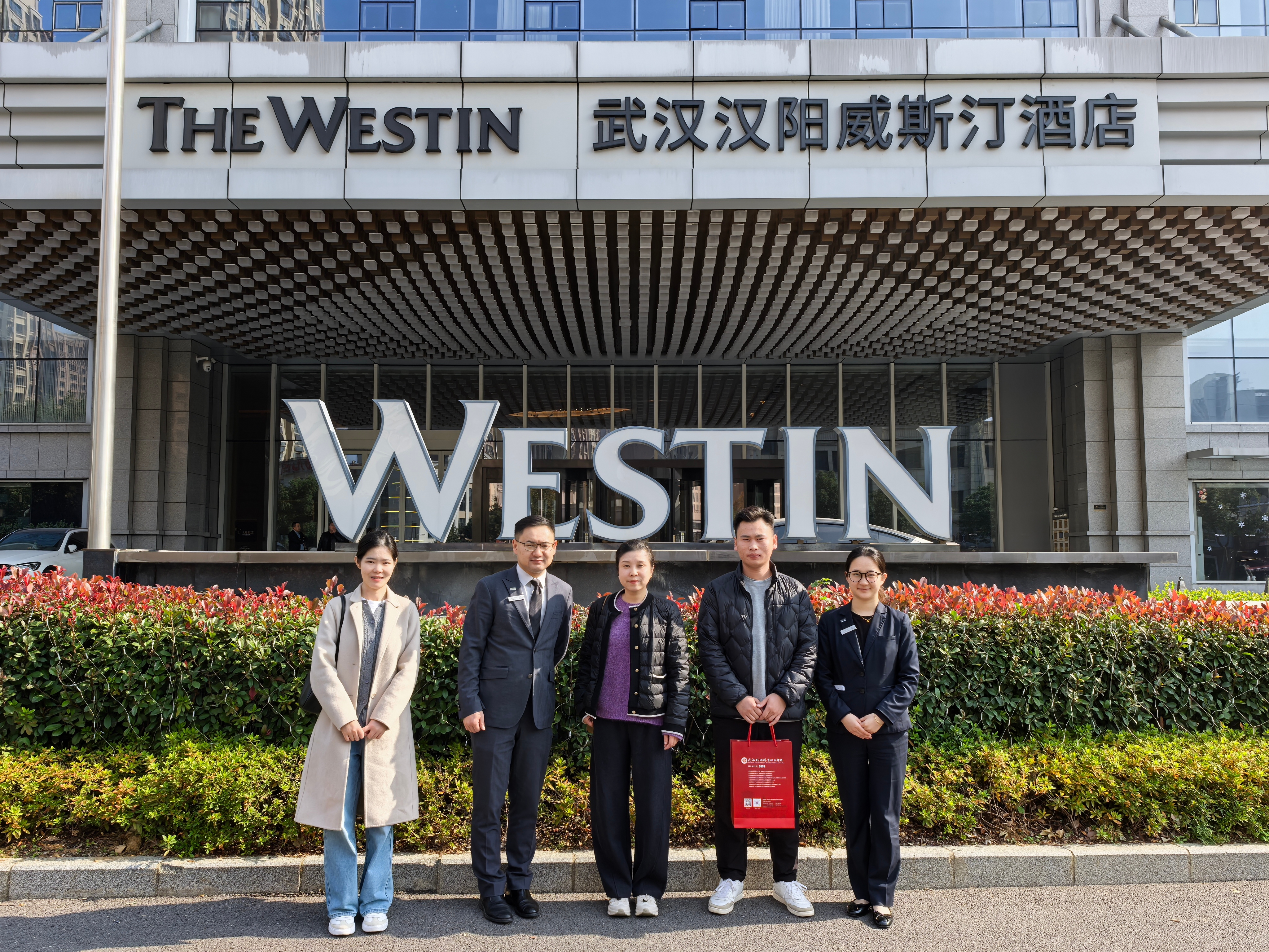 当日上午,走访团队首站抵达武汉汉阳威斯汀酒店。团队首先与在该酒店实习的5名学院学生进行了亲切座谈,细致了解同学们的实习岗位、工作内容、生活适应情况及职业收获。随后,在酒店人力资源部张经理的陪同下,团队深入参观企业文化展示区、客房、餐饮及健身中心等核心区域,对酒店的品牌理念、运营标准、服务流程及管理文化有了直观而深入的认识。在随后的校企交流中,双方围绕实习生培养模式、企业用人需求与学院实践教学的有效衔接等议题进行了务实探讨,为后续深化合作奠定了良好基础。
