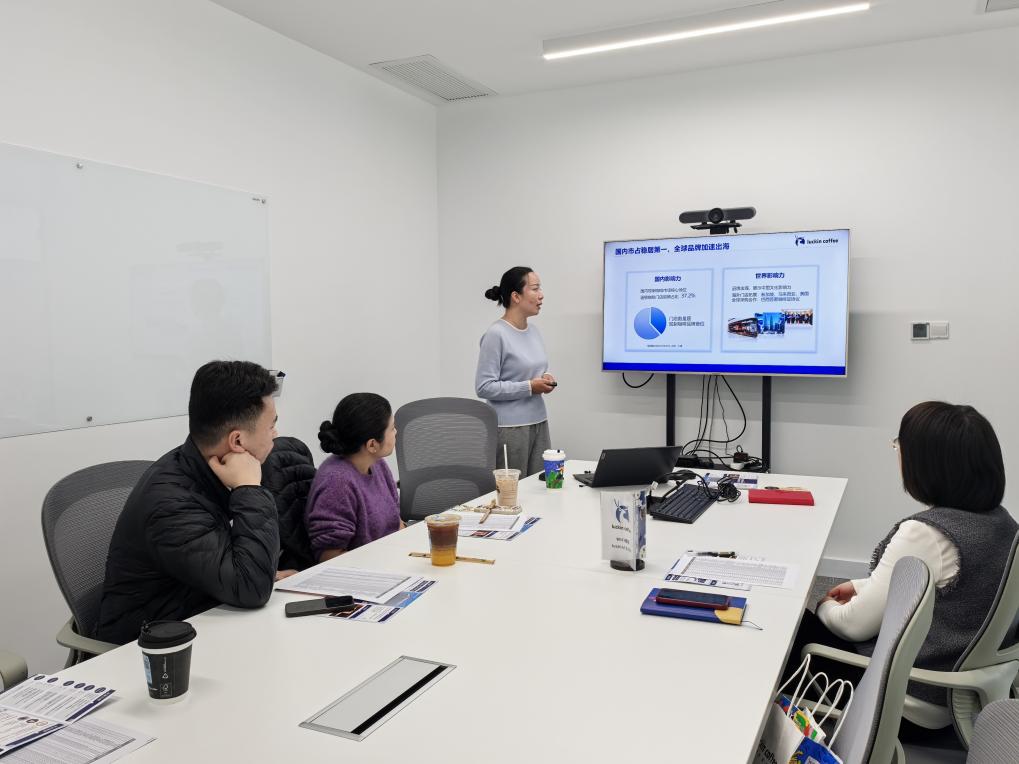 同日下午,团队马不停蹄地前往瑞幸咖啡(武汉)有限公司开展专项对接。公司人力资源总监王晶娟对外语与艺术学院一行的到访表示热烈欢迎,并详细介绍了企业发展历程、区域市场布局以及针对2026届毕业生的具体招聘需求。胡蓉副书记则从学院的专业特色、人才培养定位、2023届毕业生生源结构与就业意向等方面进行了重点推介。双方就共建“瑞幸店长班”等合作构想进行了深入磋商,初步达成合作意向。该订单班旨在通过“课程共建、师资共享、项目共研、岗位直通”的创新模式,为企业精准培养并输送高素质应用型管理人才。