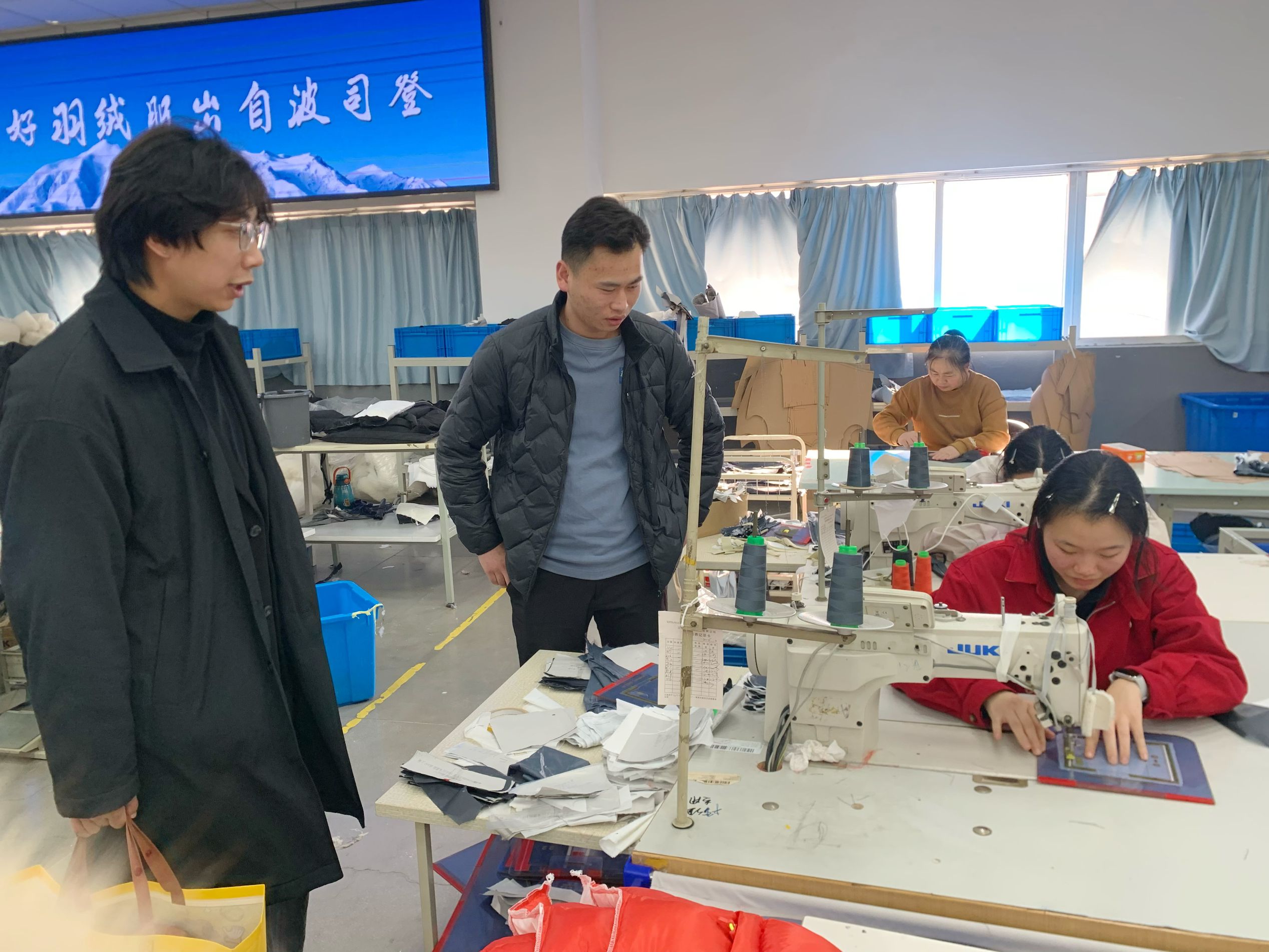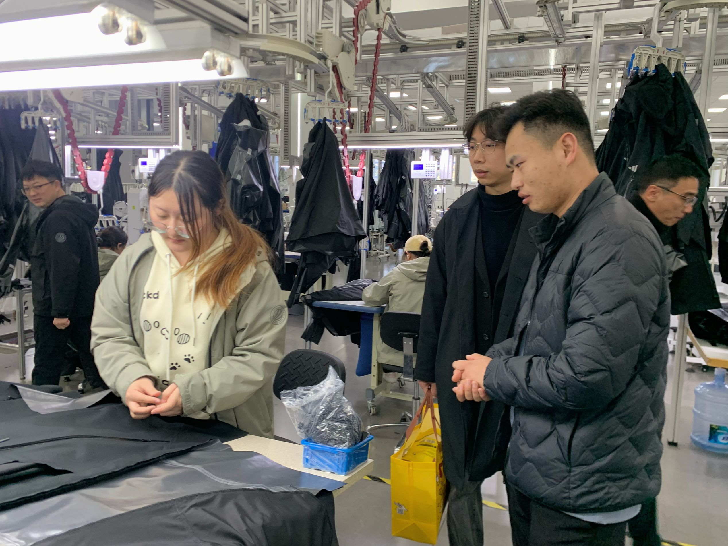 走访期间,两位老师深入生产一线,实地察看学生的工作环境与实习内容。经过近半年的岗位锻炼,同学们已基本熟悉企业生产流程,在打版、缝纫等操作岗位上显得从容熟练,展现出良好的专业素养与动手能力,实现了从课堂到车间的有效衔接。