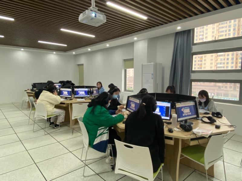 《英语语音II》是为了提高应用外国语学部商务英语专业和应用英语专业学生的英语专业能力而开设的专业基础课程。学部将现代化信息技术和英语语音学习紧密联系,建立语音室,根据授课内容培训目的等实际需求,利用桌面模板化技术快速满足多种教学用途,随时随地完成教学桌面切换,提升了教学质量。图片为学生正在使用语音设备进行录音,录音文件同步至教师电脑,教师可以随机选取学生录音进行播放纠音,巩固学生所学语音知识,做到当堂问题当堂解决。