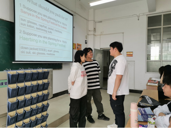 职业英语的课堂上,同学们根据老师指定的背景,结合刚刚学过的英语词句,现场开展情景对话,主题是讨论春节期间去哈尔滨旅游需要打包哪些物品。