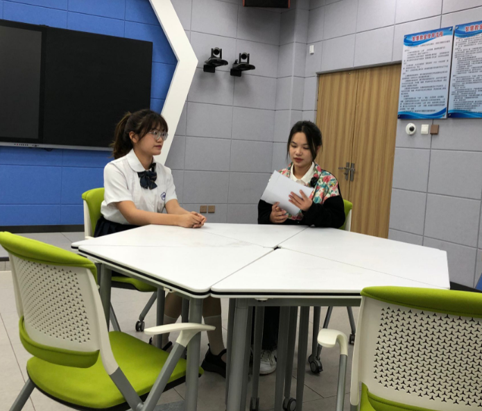 学生们在教室进行英语口语情景表演,表演主题有“欢迎新同事”“理想的工作”“做预算”“策划招待会”等。学生们情绪饱满,表达流畅。