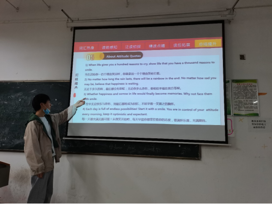 关于人生态度的课堂讨论,学生们积极地参与了讨论,并上台展示了对话,既练习了口语,又增强了对正确人生观的理解,收获满满。