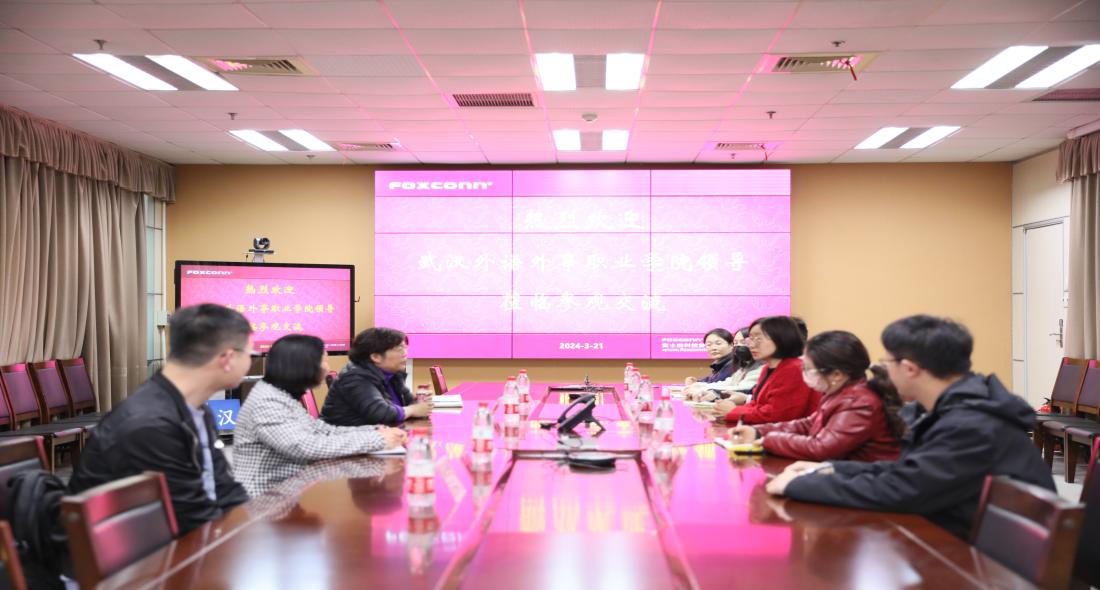 新闻网讯(通讯员皮宇岑)3月21日下午,我院副院长刘丹携应用外国语学部主任杨文秀、职教中心主任付小云及欧亚语系西班牙语教师皮宇岑前往富士康武汉科技工业园走访交流。