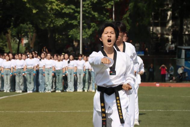 进入“时代强音”篇章,表演者以跆拳道表演为主轴,充分体现了学子们强健的体魄和奋发向上的精神风貌。