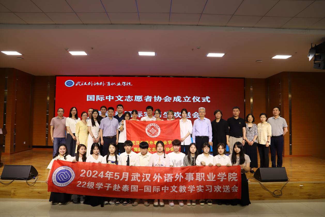 新闻网讯(记者 万安琪)5月15日晚,国际中文志愿者协会成立仪式暨赴泰国际实习生欢送会在藏龙岛校区食堂三楼报告厅隆重举行。校长盛建龙、副校长刘丹、副校长陶智勇、党委副书记杜磊出席,应用外国语学部主任杨文秀、党总支副书记胡蓉,信息技术学部党总支副书记全涛,旅游与管理学部党总支副书记孙文,财经与商贸学部党总支副书记丁慧琳,艺术与设计学部党总支副书记王波,工程技术学部党总支副书记杨佩,护理学部党总支副书记李勇,国际中文志愿者协会指导教师孙婵及其他教师代表参加。会议由教务处处长张凤秦主持,特邀青岛昆仑优德教育科技有限公司领导作为嘉宾出席,共同见证这一时刻。
