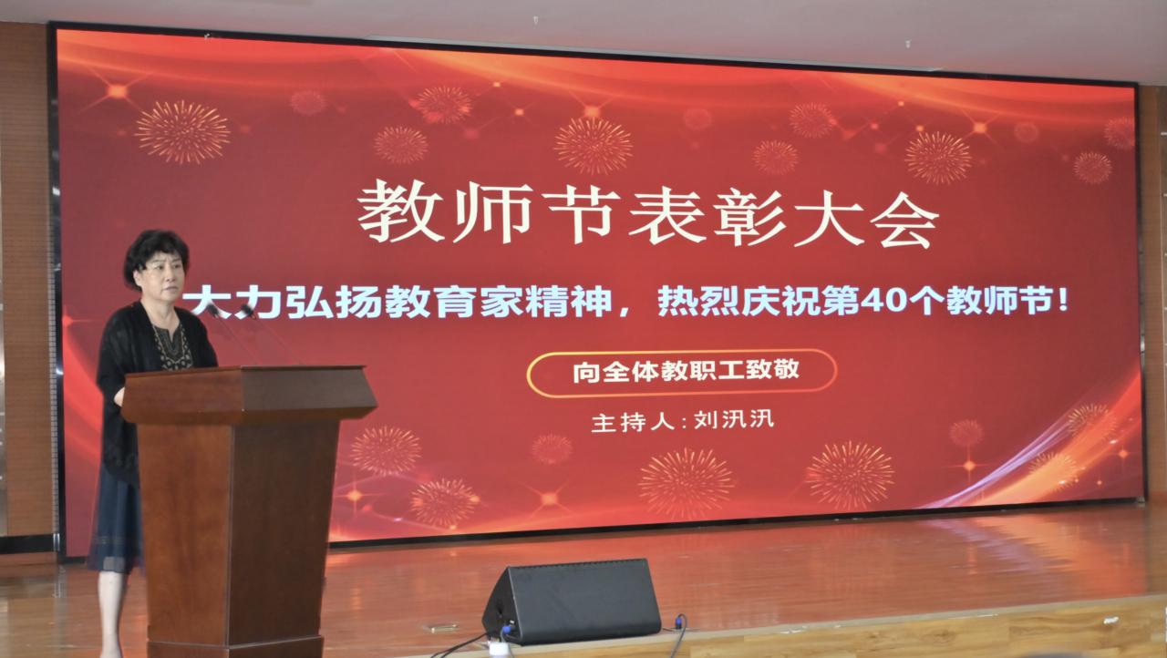 新闻网讯(记者 刘佳琪 李可纯 摄像 王骏康)9月9日下午,我校在食堂三楼报告厅隆重召开庆祝第40个教师节暨表彰大会,对教书育人工作突出的教职员工进行表彰、嘉奖,彰显尊师重教精神,激励全体教师以更加昂扬的姿态投身教育强国建设。全体校领导出席,各职能部门、受表彰的教职员工参加表彰大会。大会由副校长刘汛汛主持。
