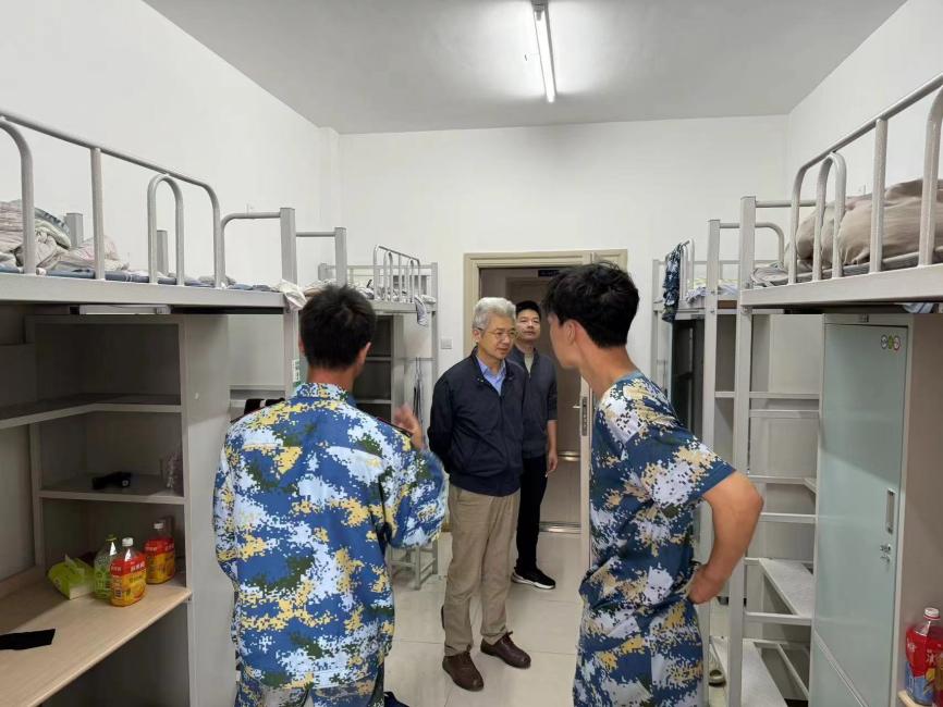 随后,盛建龙一行深入学生寝室,实地查看并关心新生的日常生活情况。他们详细询问了同学们的住宿条件、饮食状况以及日常学习安排,并与同学们亲切交流谈心。盛建龙鼓励同学们要尽快适应大学生活,树立远大目标,努力学习专业知识,同时积极参与各类社会实践活动,全面提升自己的能力和素质。