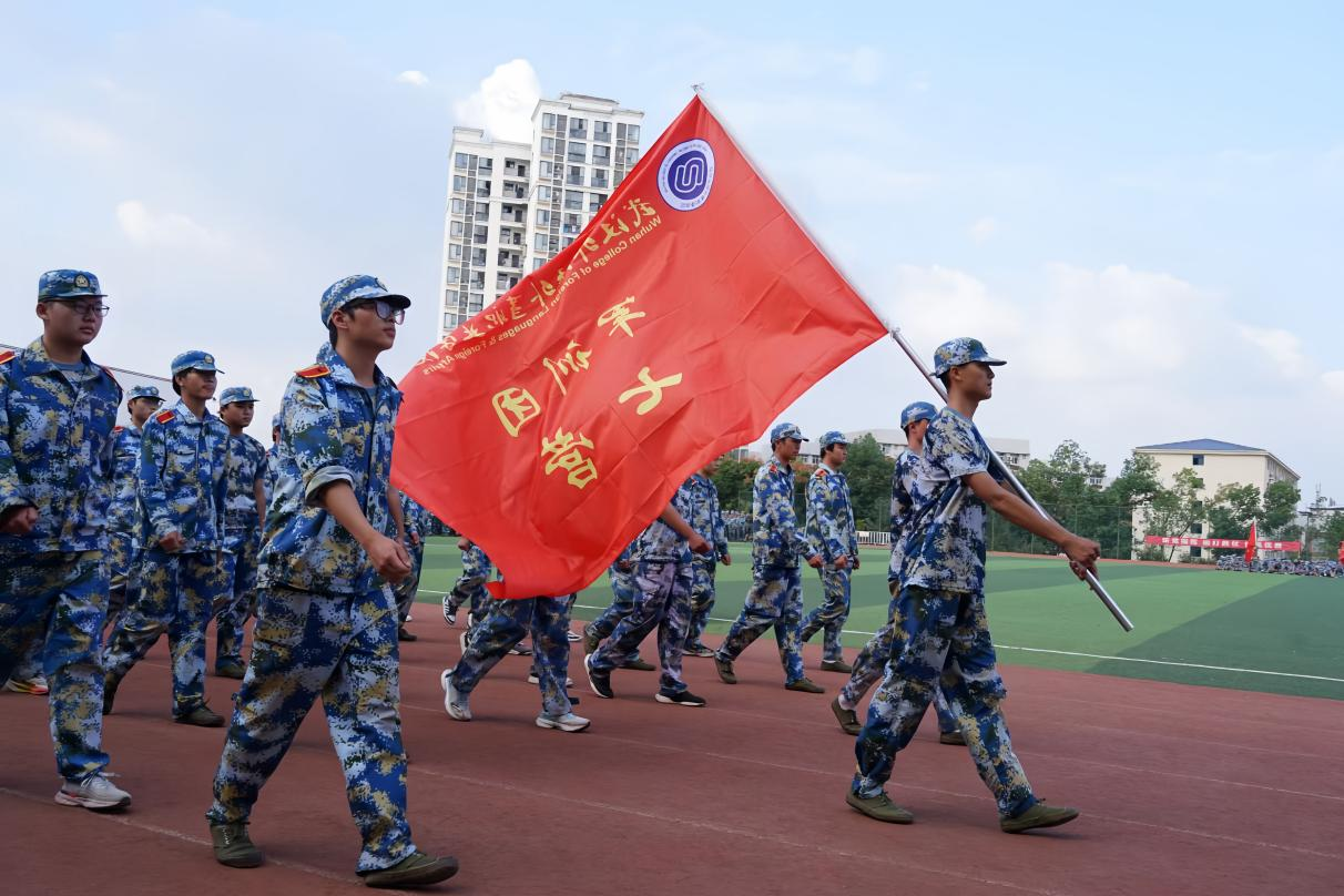 校长盛建龙发表讲话,他首先对辛勤付出的教官和老师们表示衷心的感谢,并对新生们在军训中展现出的亮眼表现表示热烈的祝贺!他向2024级新生提出三点期望,一是要以军训为新起点,以新时代为广阔舞台,以二十大精神为指引,树立远大理想,永葆家国情怀。二是要勇立潮头、敢于担当,练就过硬本领,勇担时代重任,努力成长为社会和国家需要的栋梁之材。三是要爱国明理、知荣辱、懂感恩,不断锤炼品德修为,打牢道德根基,学会珍惜与尊重、自律与敬畏、协作与豁达,争做有为青年。希望同学们珍惜这段宝贵的大学时光,在武汉外语外事职业学院积极进取、奋发向上,不负韶华、不负时代。