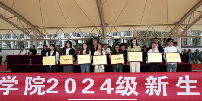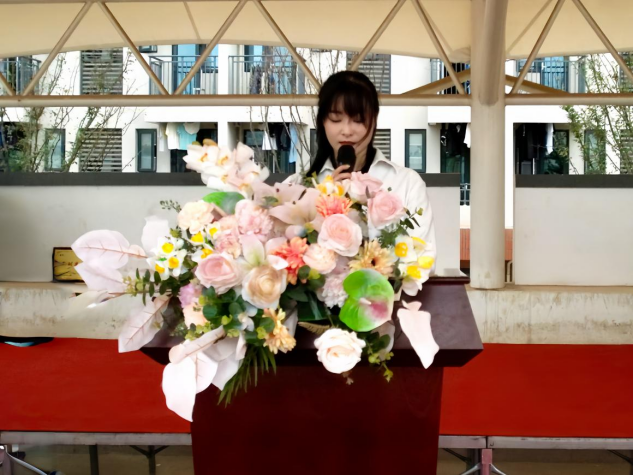 应用外国语学部2024级商务英语1班寇淑怡作为新生代表发言。她表示,大学是人生的新起点,每位新生都应当认真思考并规划自己的学习生活。她鼓励同学们以满腔的热情与坚定的信念,积极迎接大学生活中的每一个挑战;携手共进,在学术探索、社会实践、志愿服务等各个方面不断追求卓越,为自己和未来上交一份满意的答卷。