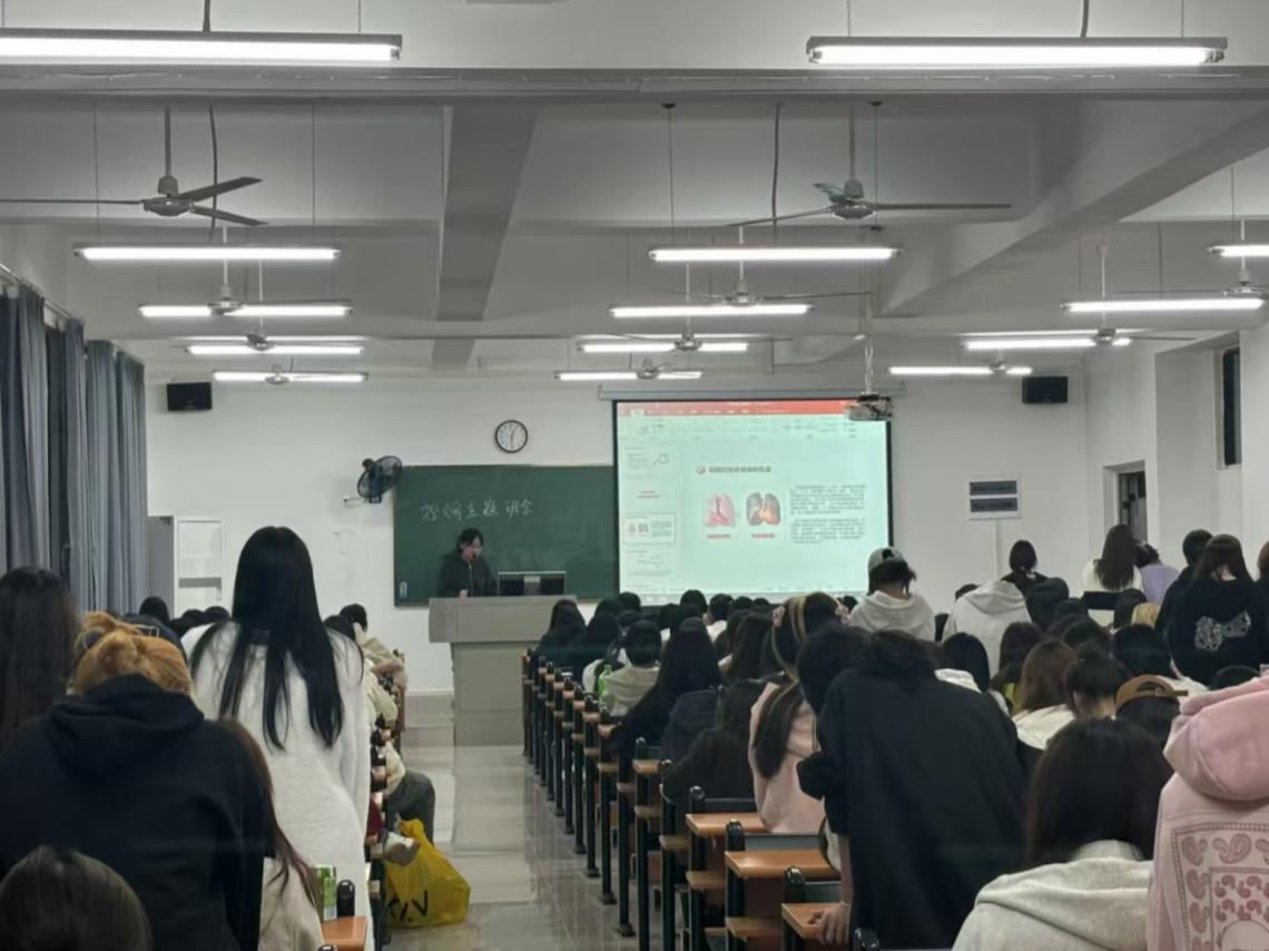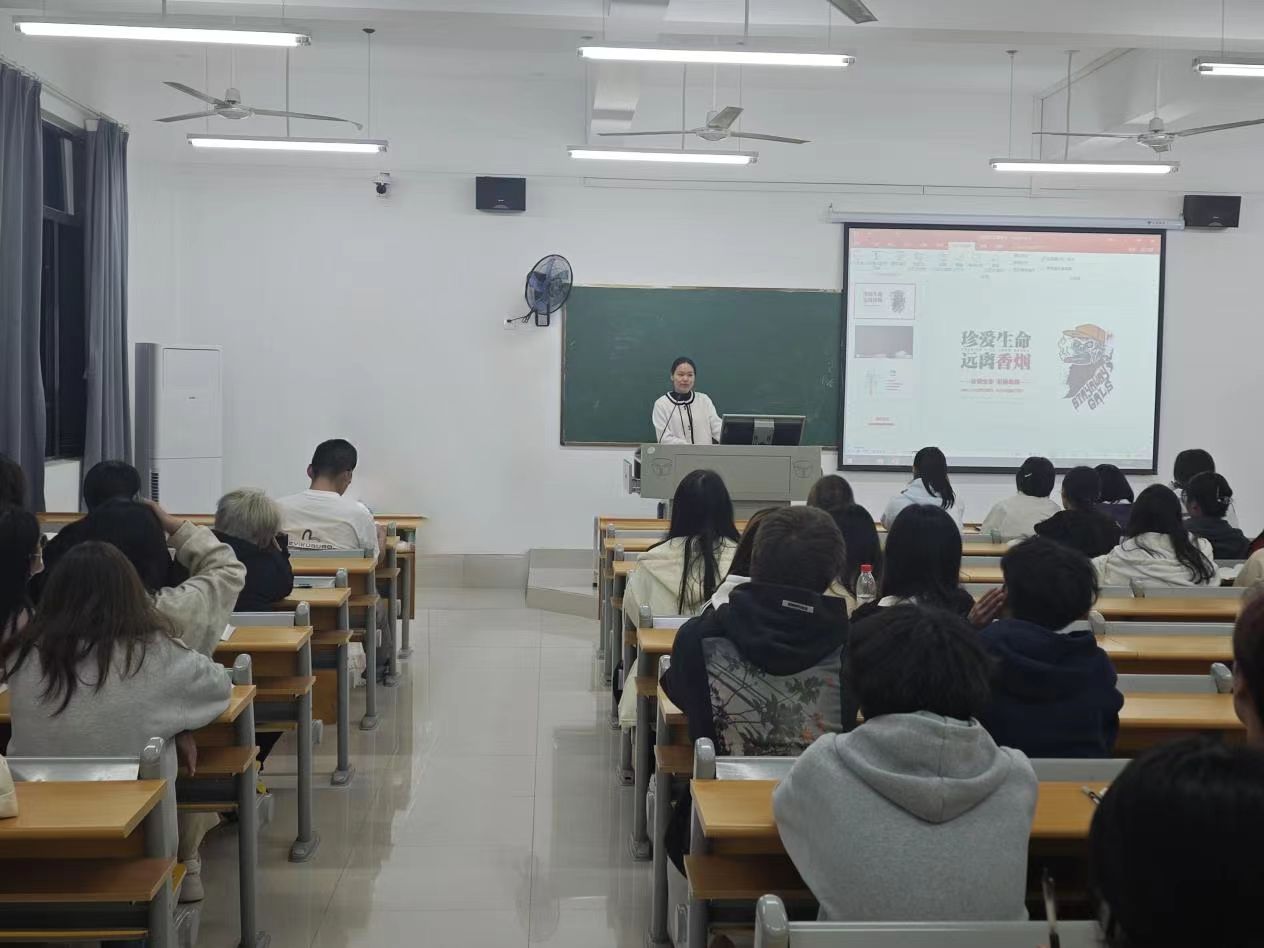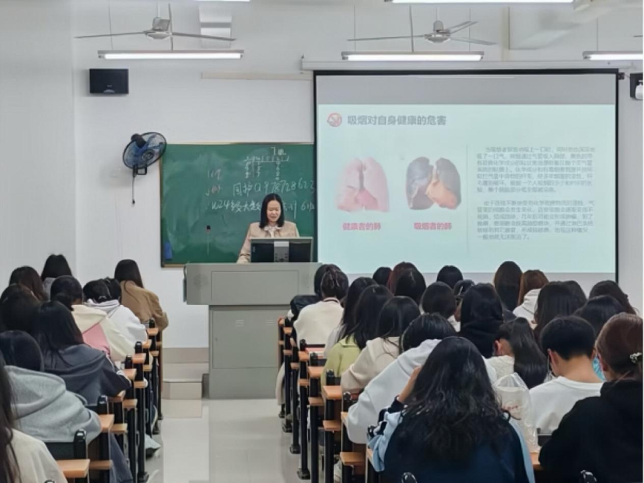 旅游与管理学部2024级辅导员陶瑞以直观深刻的案例,重点剖析了吸烟可能引发的呼吸系统疾病、心血管疾病及癌变风险等病变,让同学们深刻意识到吸烟的严重危害。