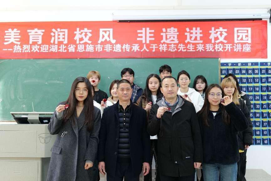 新闻网讯(记者 于秋虹)11月21日,我校特邀湖北省恩施市非遗传承人于祥志先生来校,为学生们开展了一场以“美育润校风,非遗进校园”为主题的非遗漆艺实践教学活动。