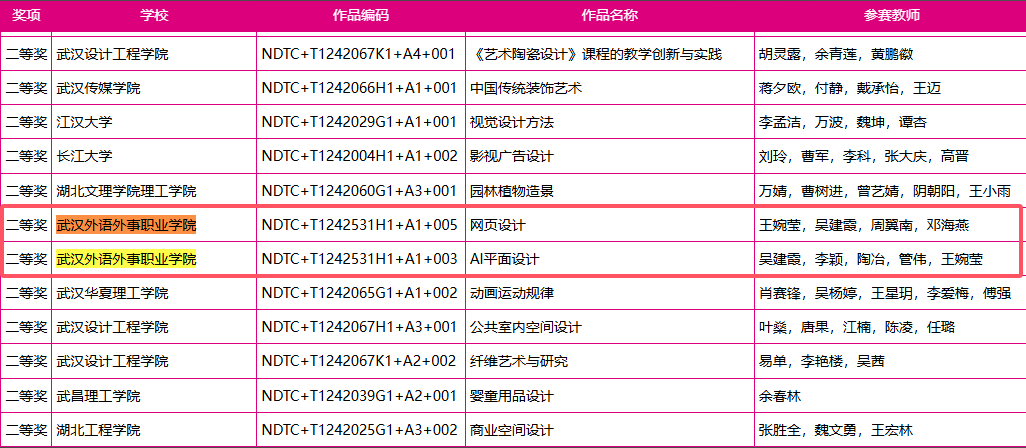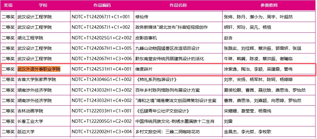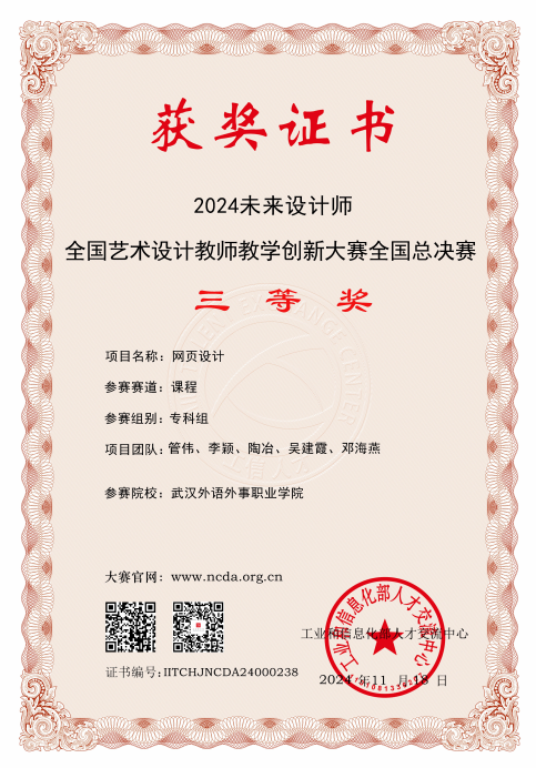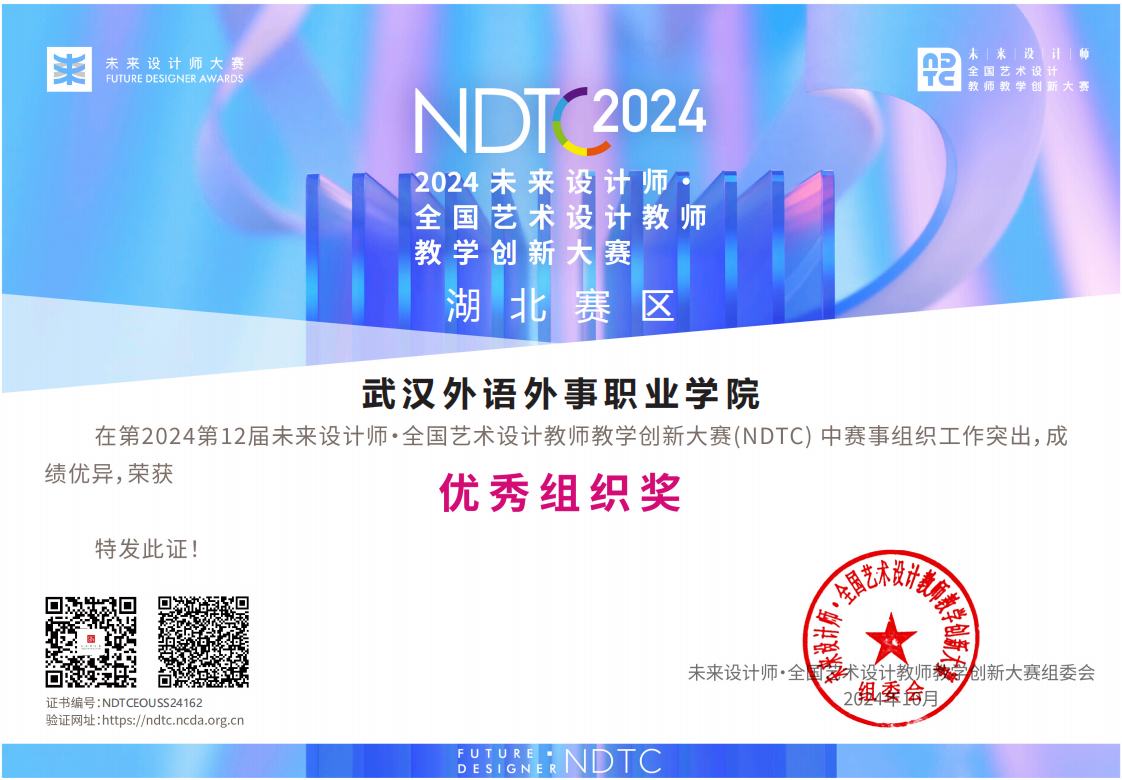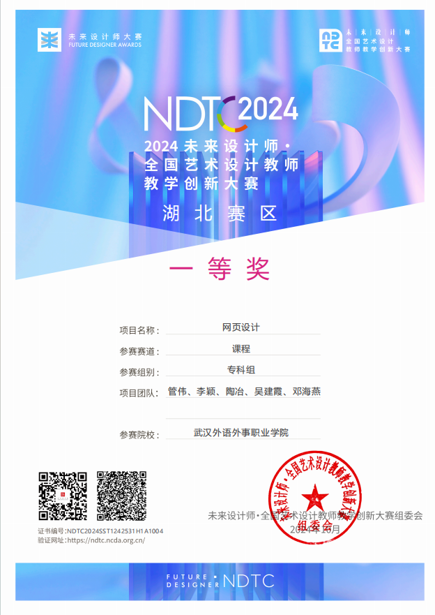新闻网讯(通讯员 李颖)近日,2024年未来设计师·全国艺术设计教师教学创新大赛(NDTC)获奖名单正式揭晓,我校信息技术学院教师团队在本次大赛中表现出色,荣获国家级三等奖1项、省级一等奖1项、二等奖3项及三等奖3项,学校荣获优秀组织奖。赛事遵循校级赛、省级赛、全国赛三级赛制,逐级选拔,其中省级赛一等奖获得者晋级全国赛。