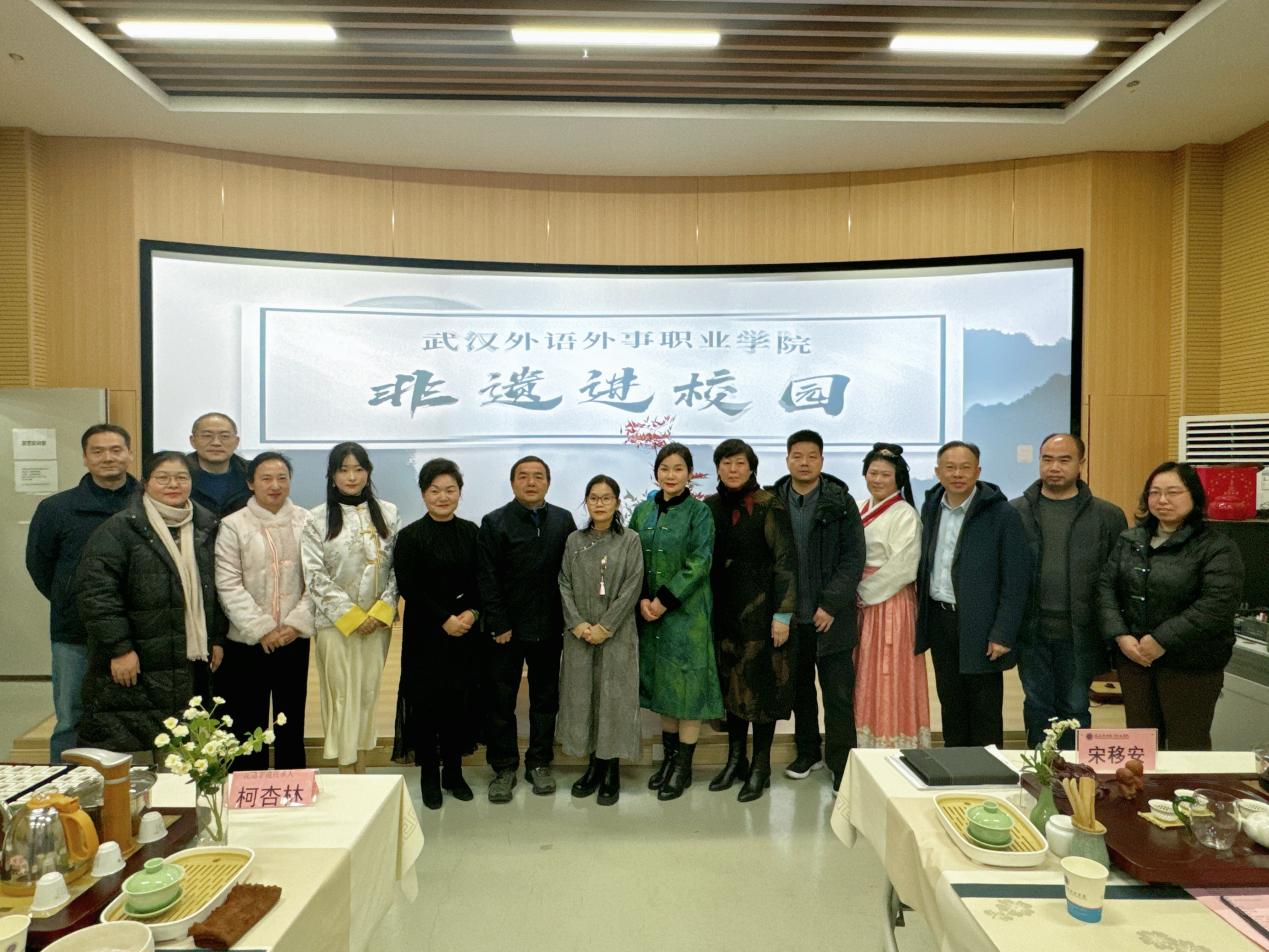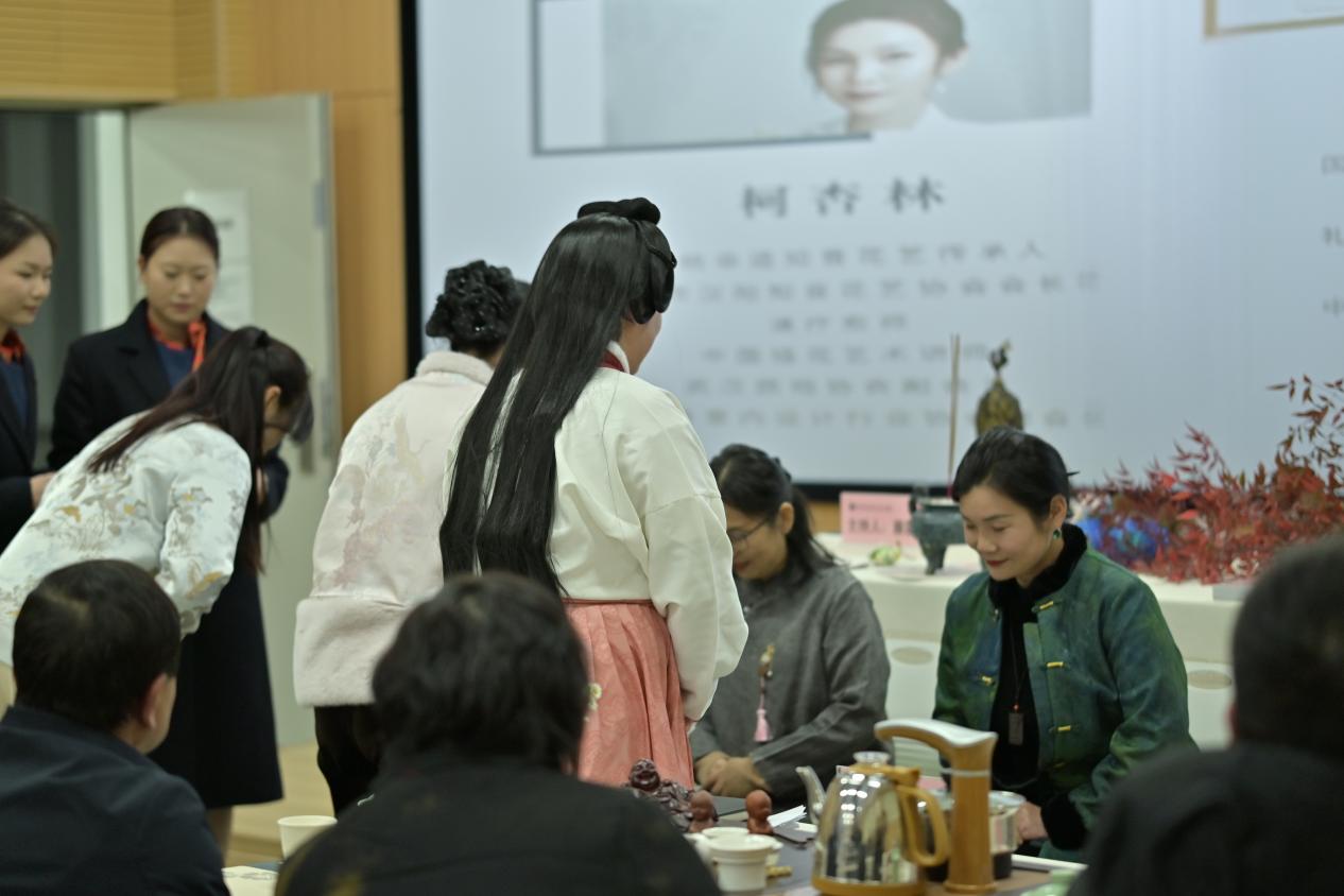 新闻网讯(记者 于秋虹 摄影 王骏康)为了促进非遗文化与我校美育教育深度融合,在实践中感受非遗的艺术魅力,培养学生的动手能力与艺术感知力,12月11日,我校在茶艺实训室成功举办了“非遗进校园”活动。副校长刘丹、副校长宋移安、党委副书记杜磊、教务科研处处长何成才、旅游与管理学院院长张欣、副院长何媚、党总支副书记赵平等多位领导和教师代表出席活动,旅游与管理学院的学生代表们积极参与活动。