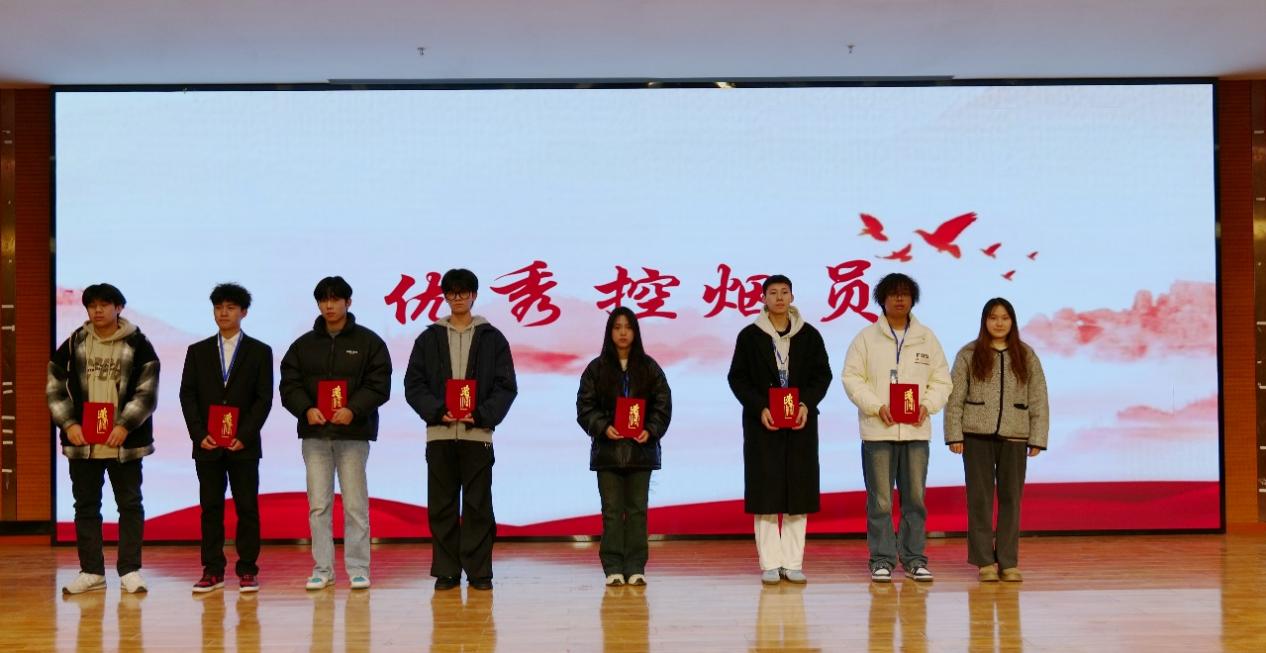旅游与管理学院分团委指导老师何炜瑶老师为优秀控烟员代表颁发荣誉证书