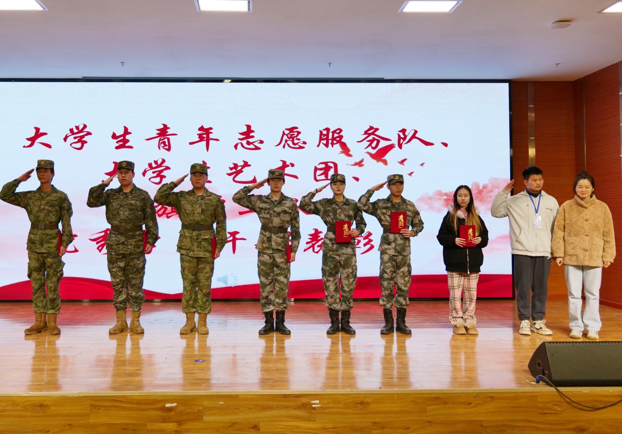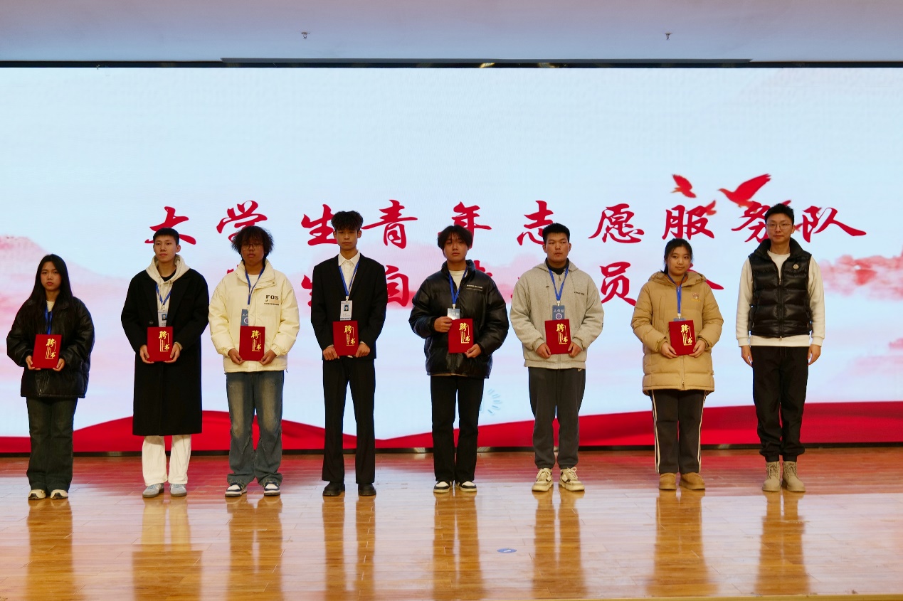 工程技术学院分团委指导老师沈坤老师为大学生青年志愿服务队和大学生自律委员会骨干颁发聘书
