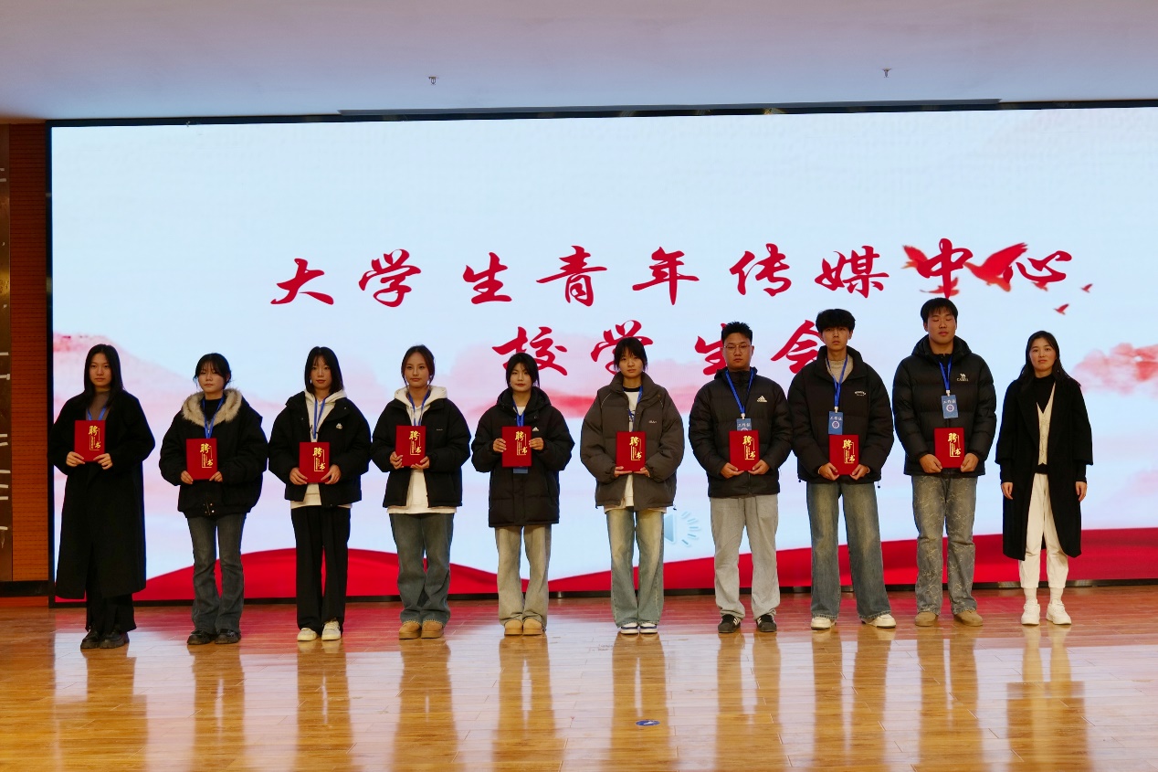 信息技术学院分团委书记张凤军老师为大学生青年传媒中心、大学生资助中心和大学生艺术团骨干颁发聘书