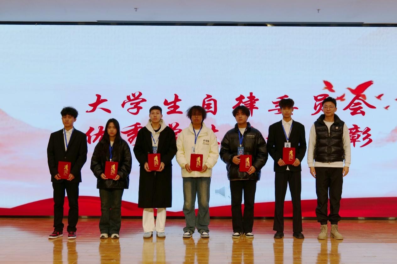 工程技术学院分团委指导老师沈坤老师为大学生自律委员会的优秀学生干部颁发荣誉证书