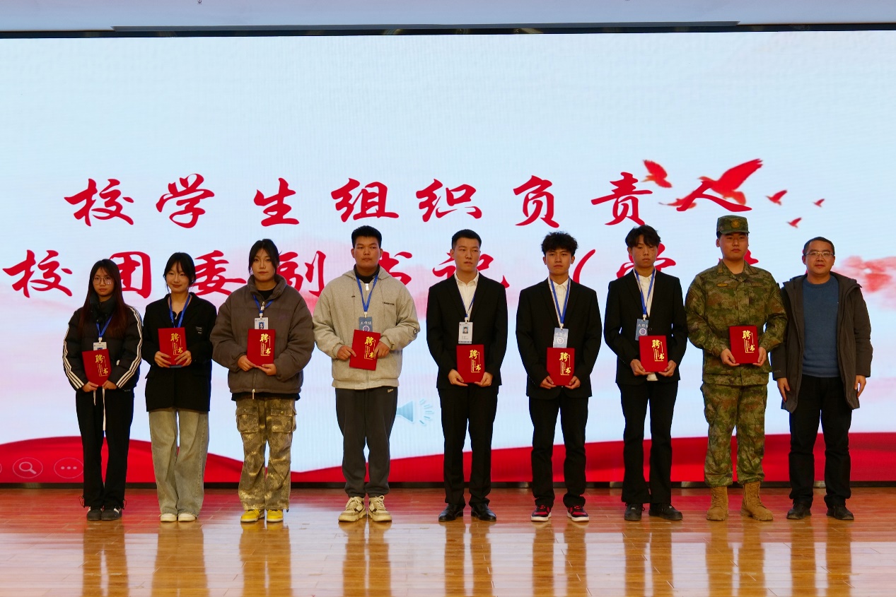 学生工作部学生教育管理科科长孙伟老师为校学生组织负责人和校团委副书记(学生)骨干颁发聘书