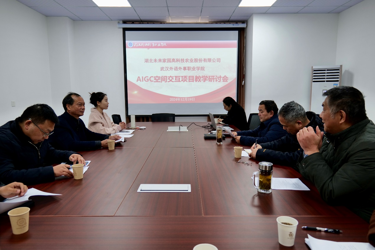 新闻网讯(实习记者 潘宜珊 摄影 黄俊豪)近日,AIGC空间交互项目教学研讨会在我校顺利举行。此次研讨会上,湖北未来家园高科技农业股份有限公司与我校就AIGC空间交互项目的教学与实践进行深入交流探讨。湖北未来家园高科技农业股份有限公司董事长尹维坊、企业指导老师彭吟雪等企业代表,我校副校长宋移安、教学科研处处长何成才、财经与商贸学院院长朱喜安、副院长吴金娇及相关专业教师出席此次会议。