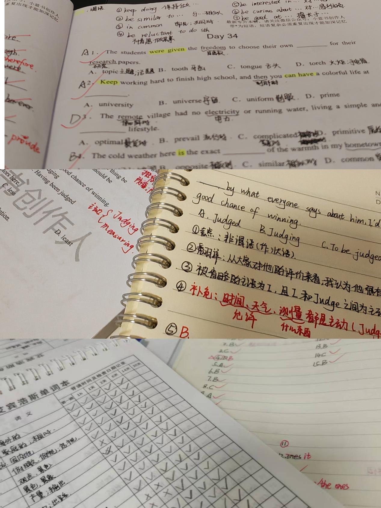 选择广播电视编导专业的过程充满波折。2022年11月确定报考方向时,她综合考量兴趣方向与院校招生条件,最终锁定长江大学。备考期间突遇“停招传闻”,在近半个月的摇摆期后,她调整策略转攻民办院校。幸运的是,在招生简章发布前夜获知长江大学扩招信息,随后果断回归原定目标。她虽想要转投民办院校,准备轻松备考,却在招生简章发布当天固执地刷新官网到凌晨,确认长江大学扩招那刻,“手抖得差点摔了手机”的她又哭又笑。面对临考前几十天的专业课教材变更,这个自称“懒人”的姑娘开启疯狂模式:每天熬夜背到凌晨,笔记本上写满了要背的知识点,反反复复背专业资料并学习专业课,将专业课里的知识点背的滚瓜烂熟;但因时间紧,任务重,她简单分析后选择战略性放弃新增难点内容,集中巩固既有知识体系;就像其偶像王一博练舞受伤也要坚持完成舞台表演,有些坚持不需要理由。偶像的力量也如影随形地陪伴着她。