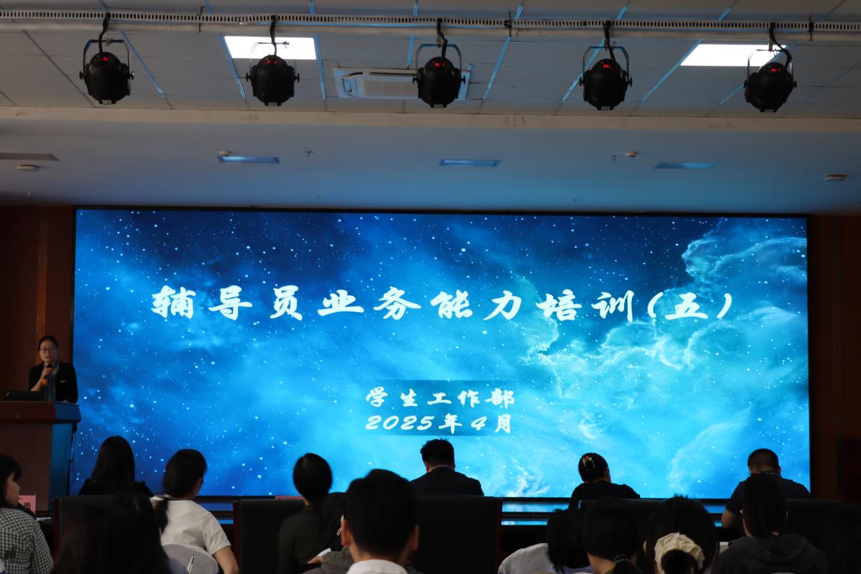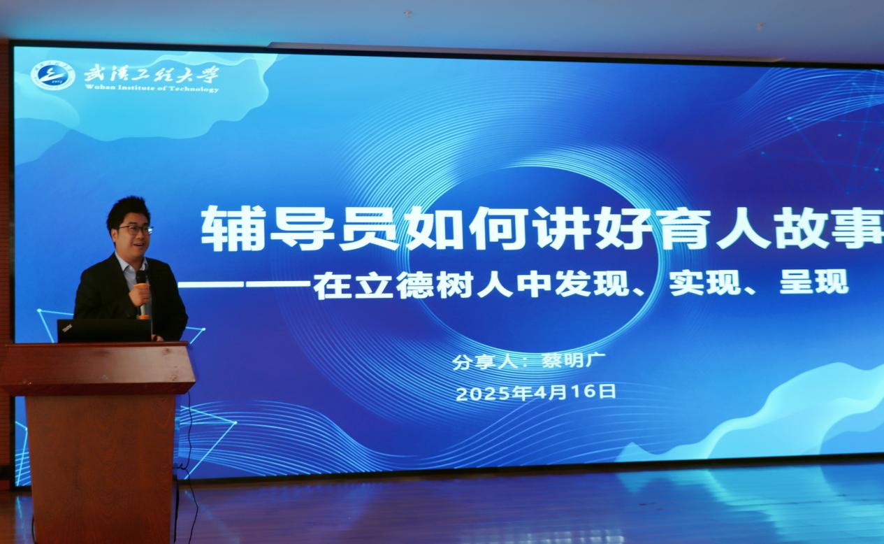 新闻网讯(记者 于秋虹)为进一步加强辅导员队伍建设,提升学生工作管理水平,4月16日上午,“荆楚好老师”、湖北省高校辅导员素质能力大赛暨育人故事分享会一等奖获得者、武汉工程大学马克思主义学院党委副书记、副院长,纪委书记,副教授蔡明广应邀在我校大学生活动中心进行专题培训。学生工作部全体人员、各学院分管学生工作的党总支副书记和全体辅导员到场学习。培训由学生工作部部长施卫荣主持。