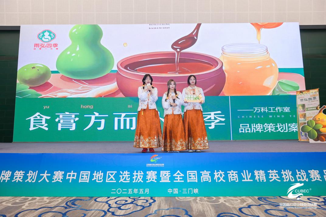 新闻网讯(通讯员 曹译丹 万安琪)5月25日,2025全国高校商业精英挑战赛品牌策划竞赛全国总决赛暨(新加坡)全球品牌策划大赛中国地区选拔赛在河南省三门峡市三门峡国际文博城会展中心圆满落幕。经过激烈角逐,我校财经与商贸学院融媒体技术与运营专业万科工作室团队凭借出色的表现,以作品《雨弘四季膏方品牌策划案》脱颖而出,勇夺全国总冠军,并同时揽获三项国家级奖项,展现了卓越的专业素养与创新能力。