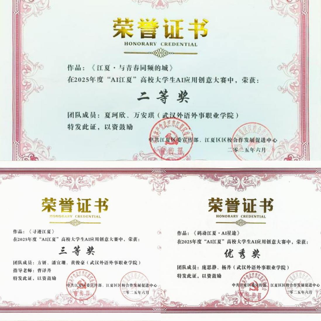 据悉,本次大赛自今年4月启动作品征集以来,吸引了全省多所高校的积极参与。我校参赛团队在曹译丹老师的精心指导下,结合AI技术与融媒体创新应用,精心打磨参赛作品。经过专家评审团的严格筛选和为期两周的线上公众投票,最终2023级万科队的《江夏·与青春同频的城》凭借其创新的AI交互设计和青春活力的内容呈现荣获二等奖;2024级与你同行队的《寻迹江夏》通过AI技术赋能文化传承,以沉浸式体验获得三等奖;2024级思丹反应队的《码动江夏·AI星途》则展现了出色的编程与创意融合能力,摘得优秀奖。