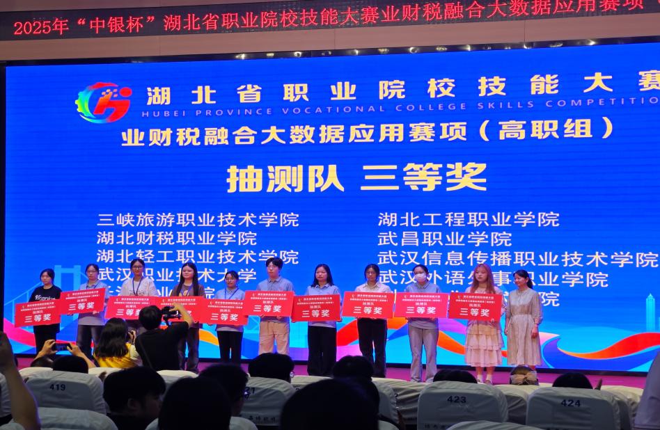 新闻网讯(通讯员 陈思璇)7月2日至7月4日,2025年“中银杯”湖北省职业院校技能大赛业财税融合大数据应用赛项圆满收官。我校抽测队参赛团队(孙晨瑶、袁宇、吴忧悠和肖彤)凭借优秀表现,荣获三等奖。