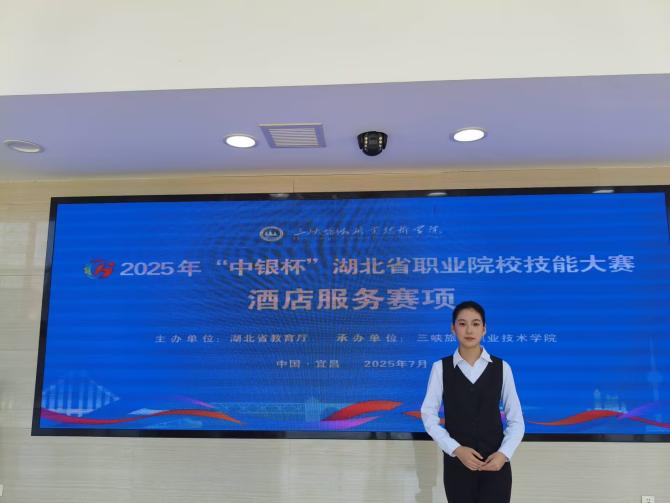 新闻网讯(通讯员 谷芸子)7月5日,2025年“中银杯”湖北省职业院校技能大赛酒店服务赛项圆满收官。我校抽测组选手酒店管理与数字化运营专业学生蒋紫妍、王梓依、余文翔凭借扎实功底与出色应变,在激烈角逐中脱颖而出,斩获省级三等奖。