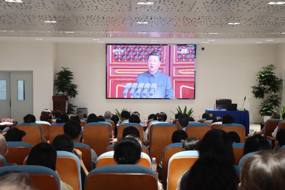 新闻网讯(通讯员 刘佳琪 黎雪婷)9月3日上午9点,纪念中国人民抗日战争暨世界反法西斯战争胜利80周年大会阅兵式在北京天安门广场隆重举行。我校全体校领导、副科级及以上干部、副高级及以上职称教职工在图书馆J506报告厅观看了大会盛况。