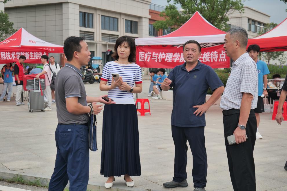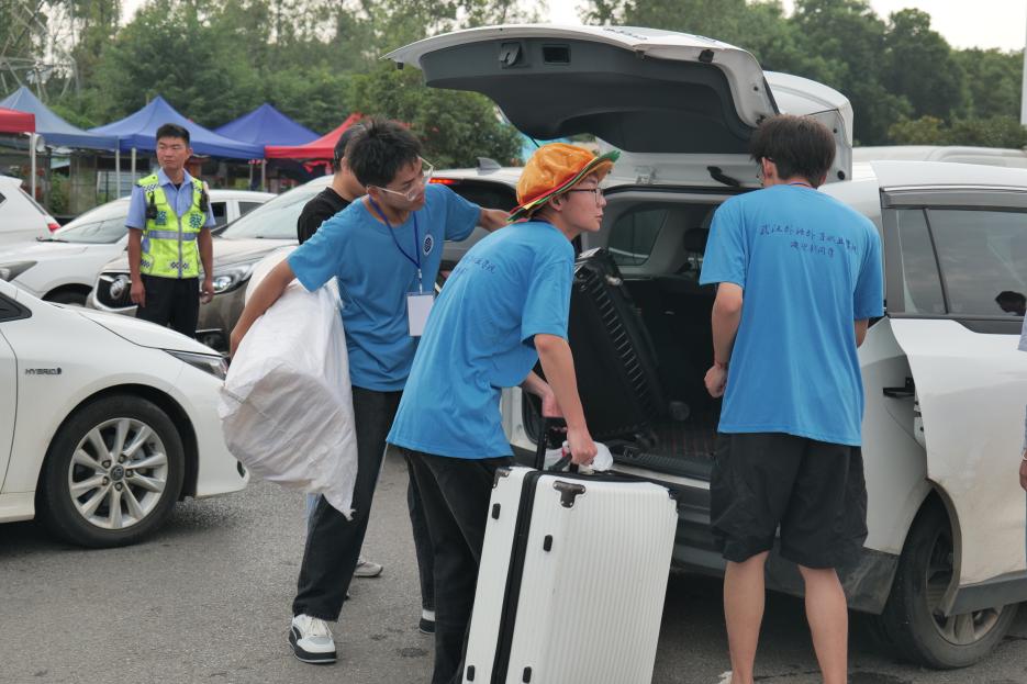 校长熊仕涛,副校长宋移安、陶智勇,党委副书记杜磊,校长助理熊绪带领相关部门负责人亲临现场,深入迎新一线,检查指导本次迎新工作,确保各项迎新措施落实到位。校领导一行实地查看校门口及周边区域交通与迎新情况,现场调度车辆进出,引导送行车辆有序停放。面对入学高峰,学校加派了人手维持秩序,有效缓解了拥堵,保障了道路通畅和人员安全,整体入校流程平稳高效。