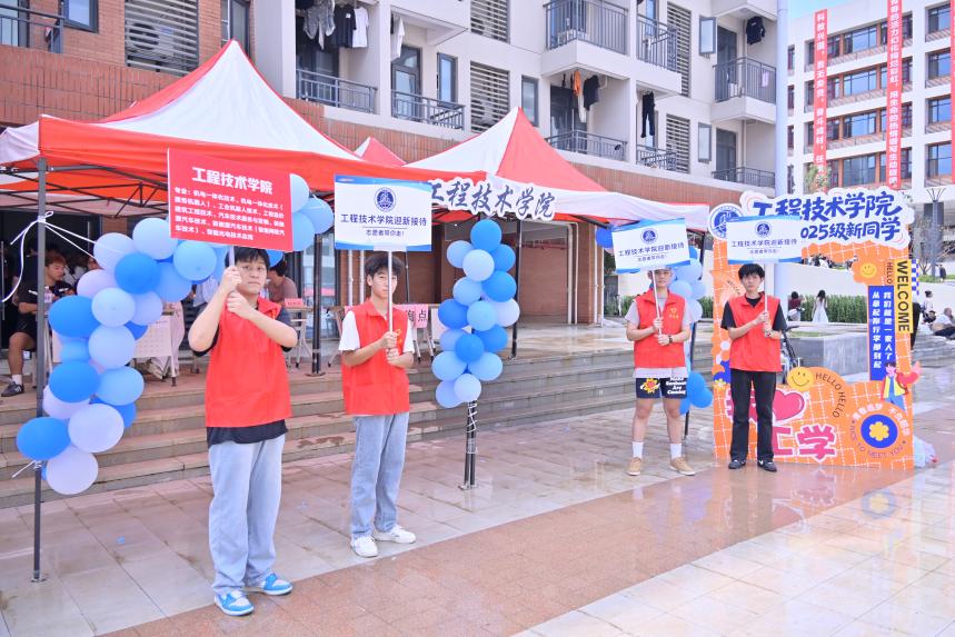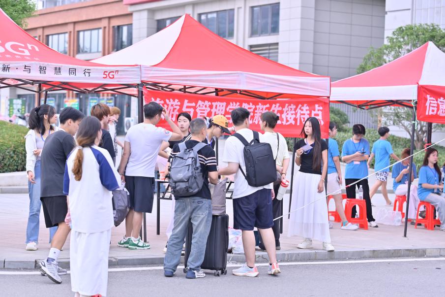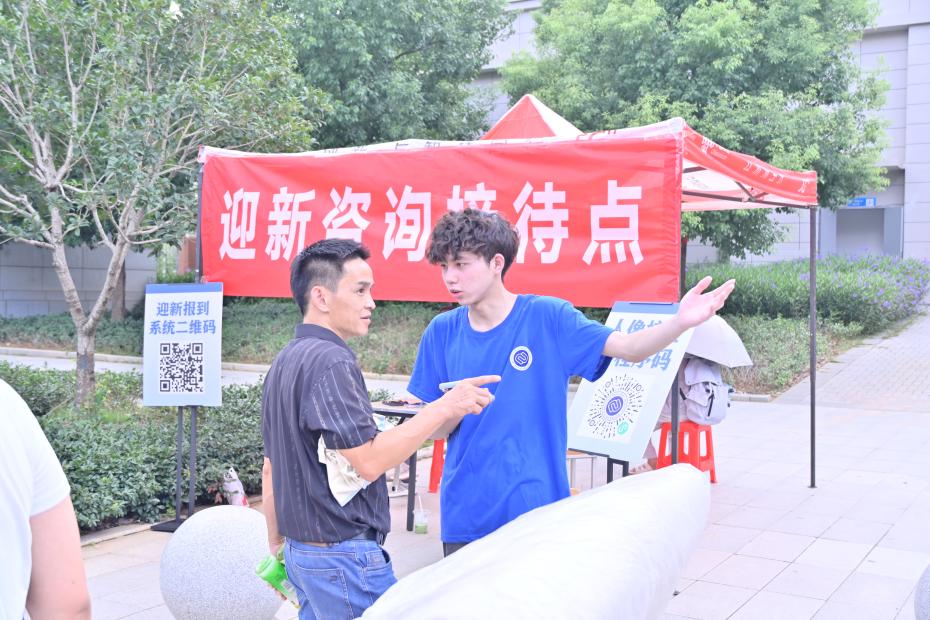校园内,各单位与部门设置的咨询引导台及迎新展台整齐排列、标识统一,工作人员专业、细致地为新生提供政策解读、手续办理及路线引导等服务,展现出学校高效、有序的迎新组织与管理水平。学生志愿者活跃在校园各区域,协助新生搬运行李、解答疑问,其热情服务与新生手中鲜亮的录取通知书相映成趣,进一步体现了学校“以生为本”的服务理念和人文关怀。