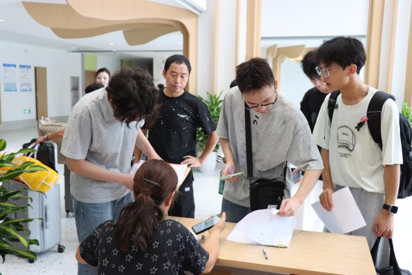 在迎新现场的各单位与部门迎新点,校领导一行细致检查了迎新工作的开展情况,与前来报到的新生进行了亲切交流,耐心询问报到进度及初入校园的感受,并鼓励大家积极适应新环境,专注学业发展,主动参与实践锻炼,尽快融入大学新生活。校领导还亲切慰问了奋战在迎新一线的工作人员,对他们的辛勤付出表示充分肯定,并强调要持续优化服务流程、注重人文关怀,以高度的责任感和使命感确保迎新工作高效、平稳、有序完成。