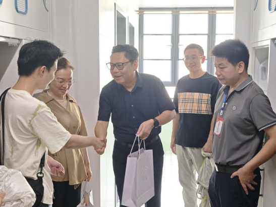 随后,校领导一行深入新生宿舍,实地查看住宿环境,详细了解新生入住情况。走访期间,校领导与新生及家长亲切交流,细致询问新生们的入学适应情况,并就家长关切的问题予以积极回应。学校还为2025级新生家庭精心准备了入学伴手礼,校领导在现场亲手赠予新生及家长,表达学校的欢迎与关怀。许多家长表示,学校周到的安排和温暖的氛围让他们倍感安心,也对孩子未来在此成长充满信心。