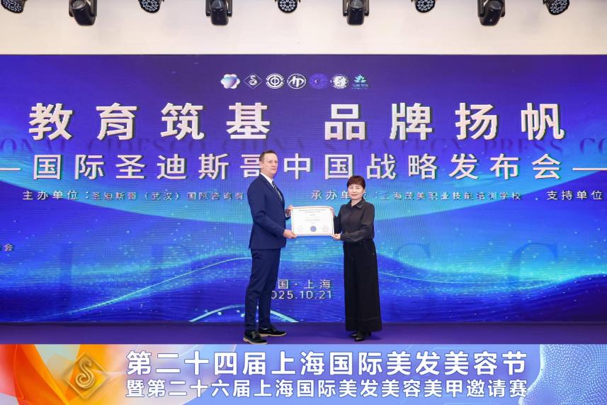新闻网讯(通讯员 雷霞)2025年10月20—21日,第二十四届上海国际美发美容节暨第二十六届上海国际美发美容美甲邀请赛在上海闵行区白金汉爵大酒店隆重开幕。我校医疗与护理学院院长熊蕊、教学副院长雷霞受邀出席,并深度参与以“教育筑基,品牌扬帆”为主题的国际圣迪斯哥(CIDESCO)中国战略发布会。会上,我校被授予“圣迪斯哥国际培训学校预备中心”感谢状,标志着学校在国际化办学进程中迈出关键一步。