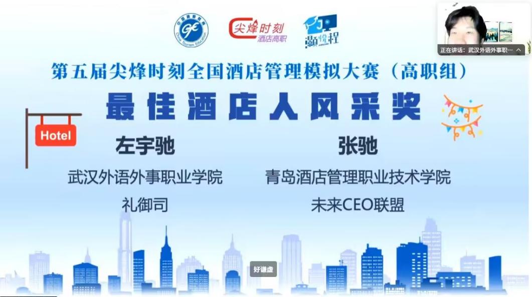 荣誉背后是团队的辛勤付出。他们利用有限的休息时间全身心投入,争分夺秒地钻研复杂模拟系统,积极参与团队讨论。在最终的案例分析与答辩环节,面对评委与竞争对手的连环提问,左宇驰同学沉着应对,对答如流,展现出超越年龄的专业素养,因此荣获“最佳酒店人风采奖”。
