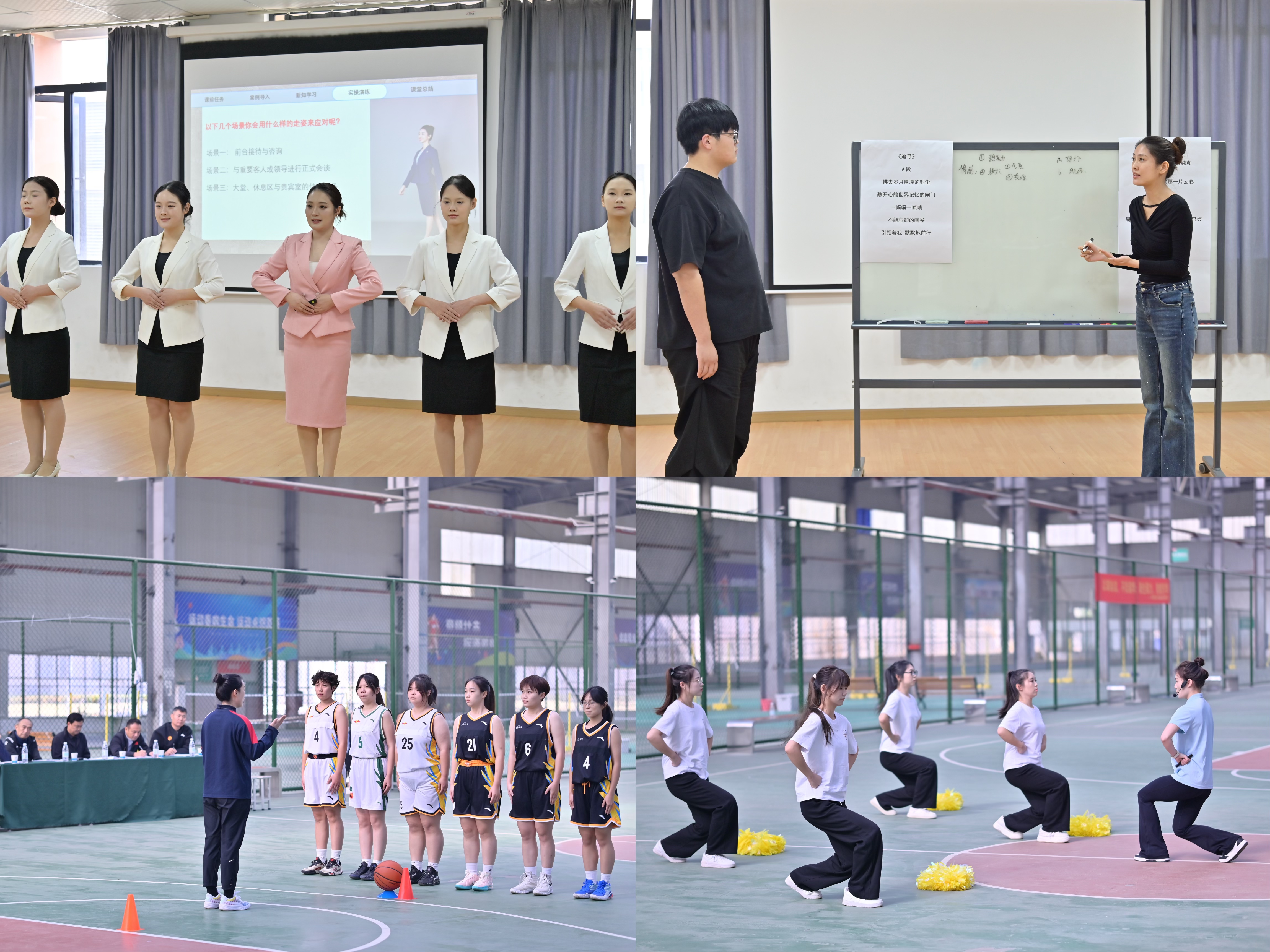 11月15日,实践教学组比赛在武汉外语外事职业学院体育馆和3号教学楼形体训练房内成功举办,8名参赛教师分为实践教学一组与实践教学二组两个竞赛单元展开比赛。参赛教师聚焦体育、艺术教学实操特点,将创新教学理念与实践教学深度融合,灵活运用多媒体演示、实操训练、现场示范等教学手段,搭配分组实训、互动点评等适配性教学模式,让专业技能训练更具趣味性与实效性,充分调动了学生的学习积极性与实操热情,彰显了娴熟的实践教学功底与过硬的实践教学能力。