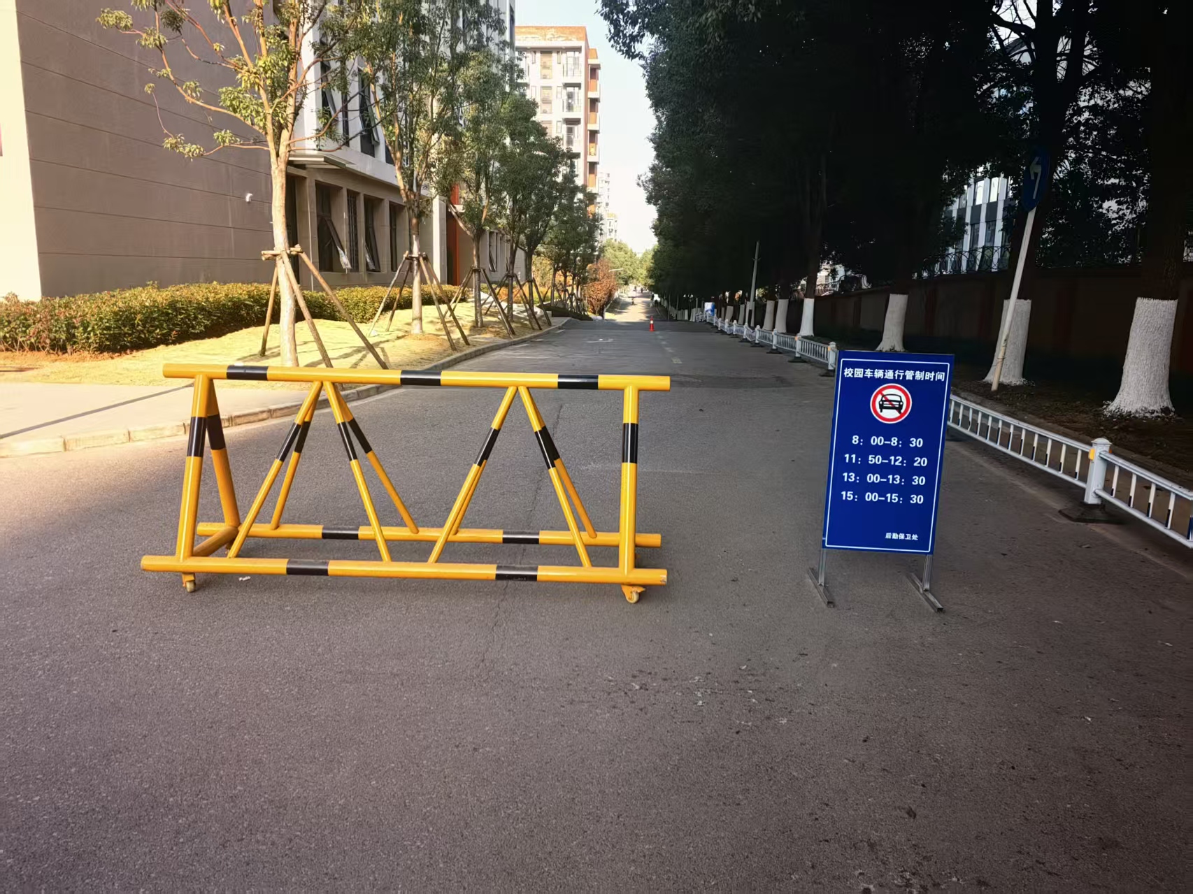 在安保巡逻机制上,日海校区两校整合安保力量,将原有的“各自巡逻” 调整为“联合巡逻+分区值守”模式,每天早中晚三个高峰时段加密巡逻频次,重点管控教学楼门口、宿舍楼下、食堂周边等人员密集区域;同时针对学生上学、放学关键时段,在教学楼周边主干道、宿舍区至校门口必经路段实施校园道路限时交通管制,禁止所有机动车通行,安排专人值守引导人流,保障学生安全通行;此外依托校园监控系统实现“线上+线下”联动防控,一旦发现违规入校苗头,立即调度附近安保人员快速处置。自措施实施以来,校园内交通拥堵现象明显缓解,学生上下学通行安全得到有效保障,师生对食品安全的满意度持续提升,切实筑牢了校园安全屏障。