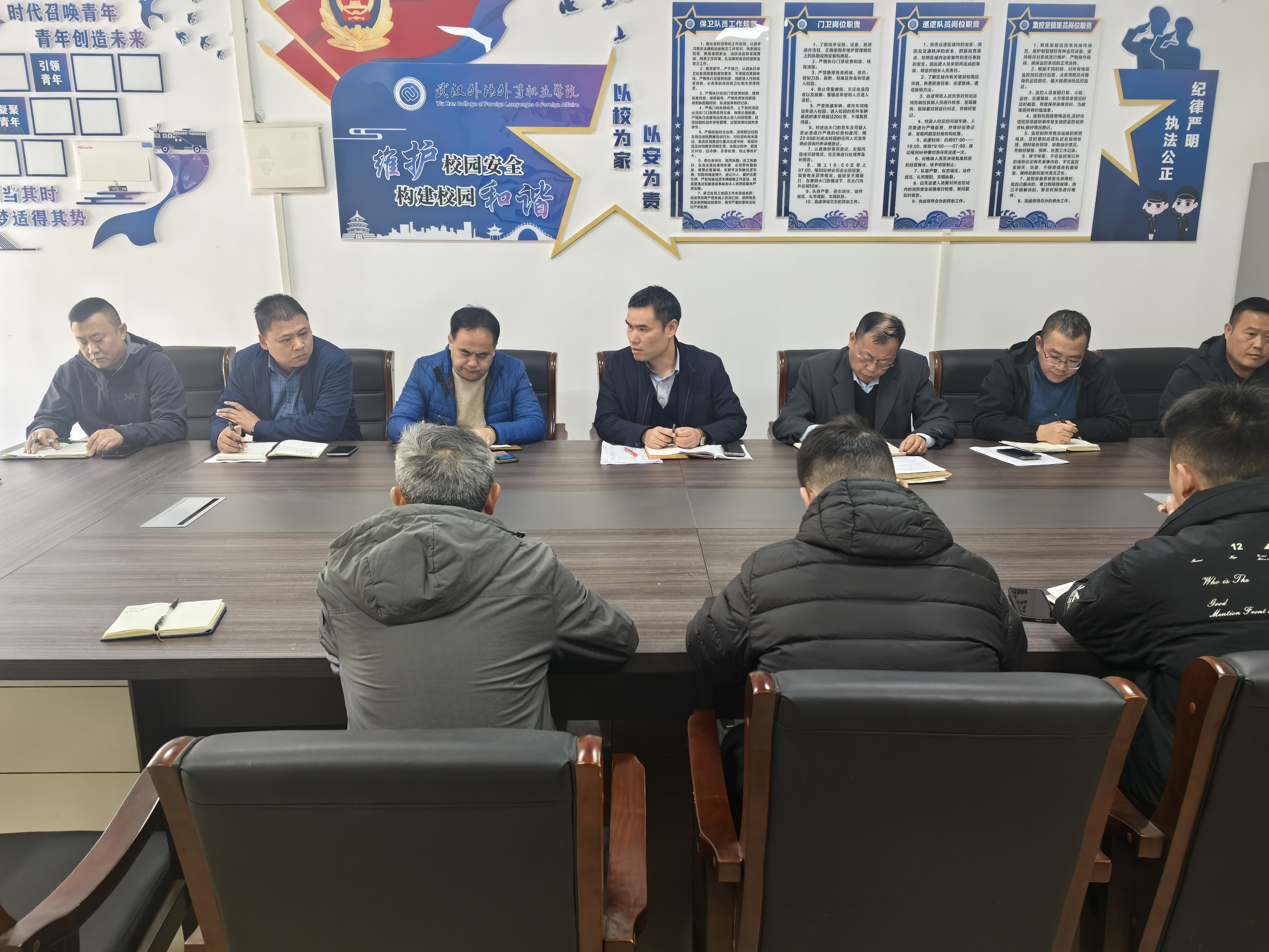 两校后勤保卫工作的深度融合,是同一校区下资源整合、优势互补的生动实践,更是以师生需求为导向、提升校园治理能力的具体行动。为确保融合工作精准发力、贴合实际,两校分管后勤保卫工作副校长陶智勇亲自带队,组织两校后勤保卫处处长及核心骨干成员专程赴武昌职业学院进行交流学习。