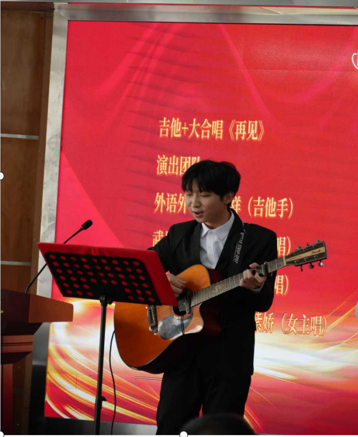 大会风采展示环节,我校医疗与护理学院学子陈奥祥与其他院校同学携手带来吉他弹唱表演,用《再见》《夜空中最亮的星》等温情歌曲,抒发对实习时光的眷恋、对师长的感恩及对未来职业的期许,精彩表现获得全场认可。我校医疗与护理学院副院长雷霞全程观看表演,对学子们展现出的青春朝气与人文情怀倍感欣慰,表演后鼓励实习学子们将实习期间的收获转化为职业成长的动力,坚守护理初心,践行使命担当。