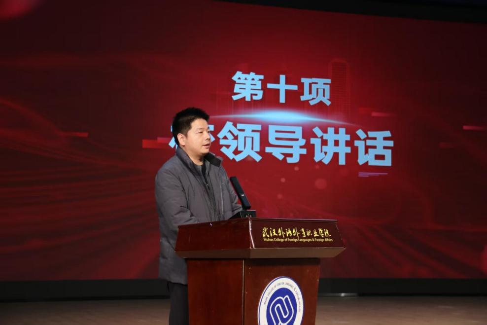 最后,校党委副书记杜磊发表讲话。他充分肯定了过去一学年学生工作取得的显著成效,向获奖师生表示热烈祝贺,向辛勤耕耘在育人一线的学工队伍致以诚挚问候。他寄语全体学子,要以榜样为引领,坚定理想信念、锤炼过硬本领、涵养高尚品德,在青春赛道上奋力奔跑;希望全体学工人员坚守育人初心,做学生成长路上的良师益友,共同为培养社会主义合格建设者和可靠接班人而努力。